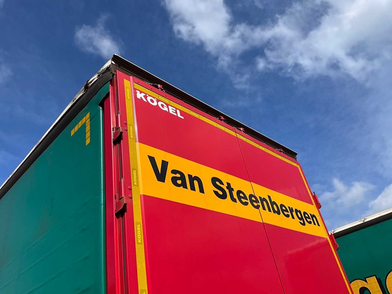 Voorzien van WABCO SmartBoard, liftas, pneumatische ophanging, steunpoten JOST Modul B0402, reserveband. Bandenmaat: 385/65 R22.5. Profieldiepte banden: 5,58mm, 7,65mm, 10,37mm, 9,59mm, 7,69mm, 5,91mm. Aanwezige documenten: Kentekenbewijs deel I, Kentekenbewijs deel II, Identificatieverslag, Gelijkvormigheidsattest, Keuringsbewijs, TÜV Nord certificaat. Aanwezige documenten: Kentekenbewijs deel I, Kentekenbewijs deel II, Identificatieverslag, Gelijkvormigheidsattest, Keuringsbewijs, TÜV Nord certificaat. Nee Merk: KÖGEL Type: SN 24 Type aanhangwagencarrosserie: Schuifzeilaanhangwagen Bouwjaar: 2019 Chassisnummer VIN: WK0S0002400241751 Datum eerste toelating: 8/4/2019 APK vervaldatum: 19/4/2026 Aantal assen: 3 Laadvermogen: 34820kg Eigen gewicht: 7180kg Totale afmeting L: 13950mm Totale afmeting Breedte: 2550mm Totale afmeting Hoogte: 4000mm