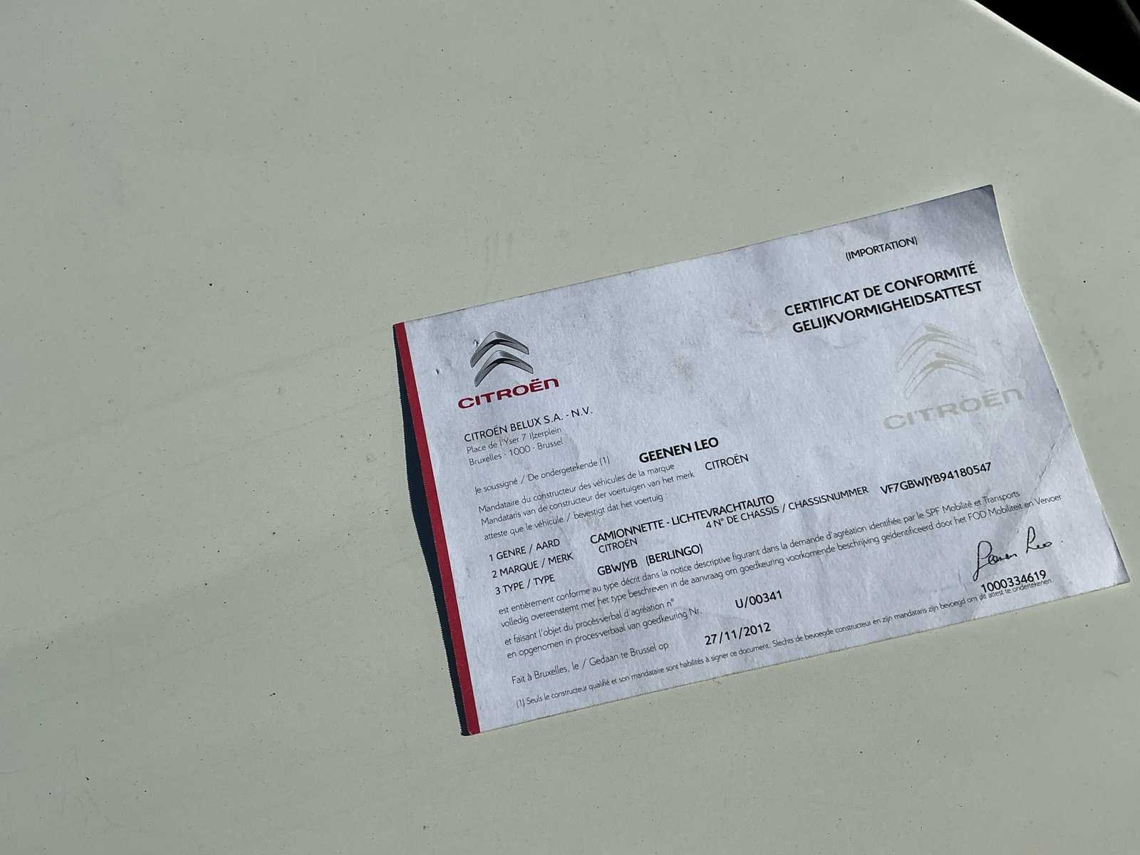No Merk: Citroen Type: Berlingo Bouwjaar: 2005 Chassisnummer: VF7GBWJYB94180547 Afgelezen kilometerstand: 347000km Cilinderinhoud: 1868cc Vermogen (kW): 51kW Brandstof: Diesel Transmissie: Handgeschakeld Nationaliteit documenten: België Kentekenpapieren compleet?: true Boorddocumenten aanwezig?: true Startinformatie: Start&rijdt