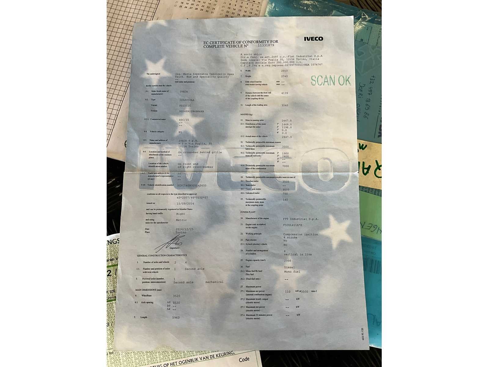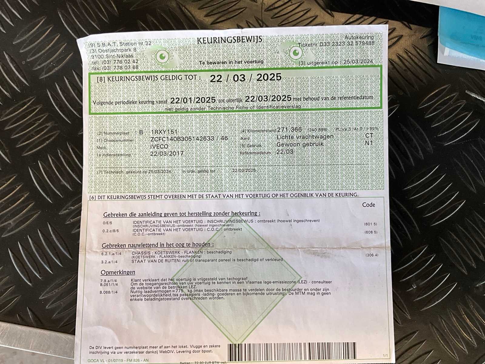 Nee Merk: Iveco Model: 40C/35 Bouwjaar: 2017 Afgelezen kilometerstand: 291384km Cilinderinhoud: 2998cc Vermogen (kW): 110kW Brandstof: diesel Chassisnummer: ZCFC140B305142633 Datum eerste toelating: 22/03/2017 Nationaliteit documenten: Belgisch Start en rijdt: Ja Inschrijvingsbewijs - deel 1 : Aanwezig Inschrijvingsbewijs - deel 2: Aanwezig