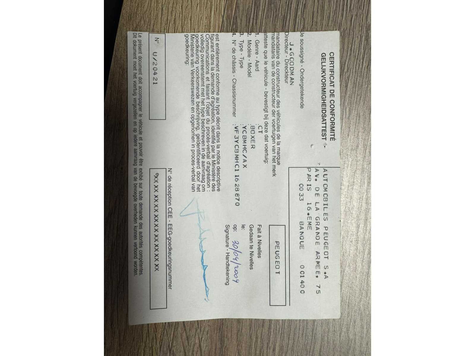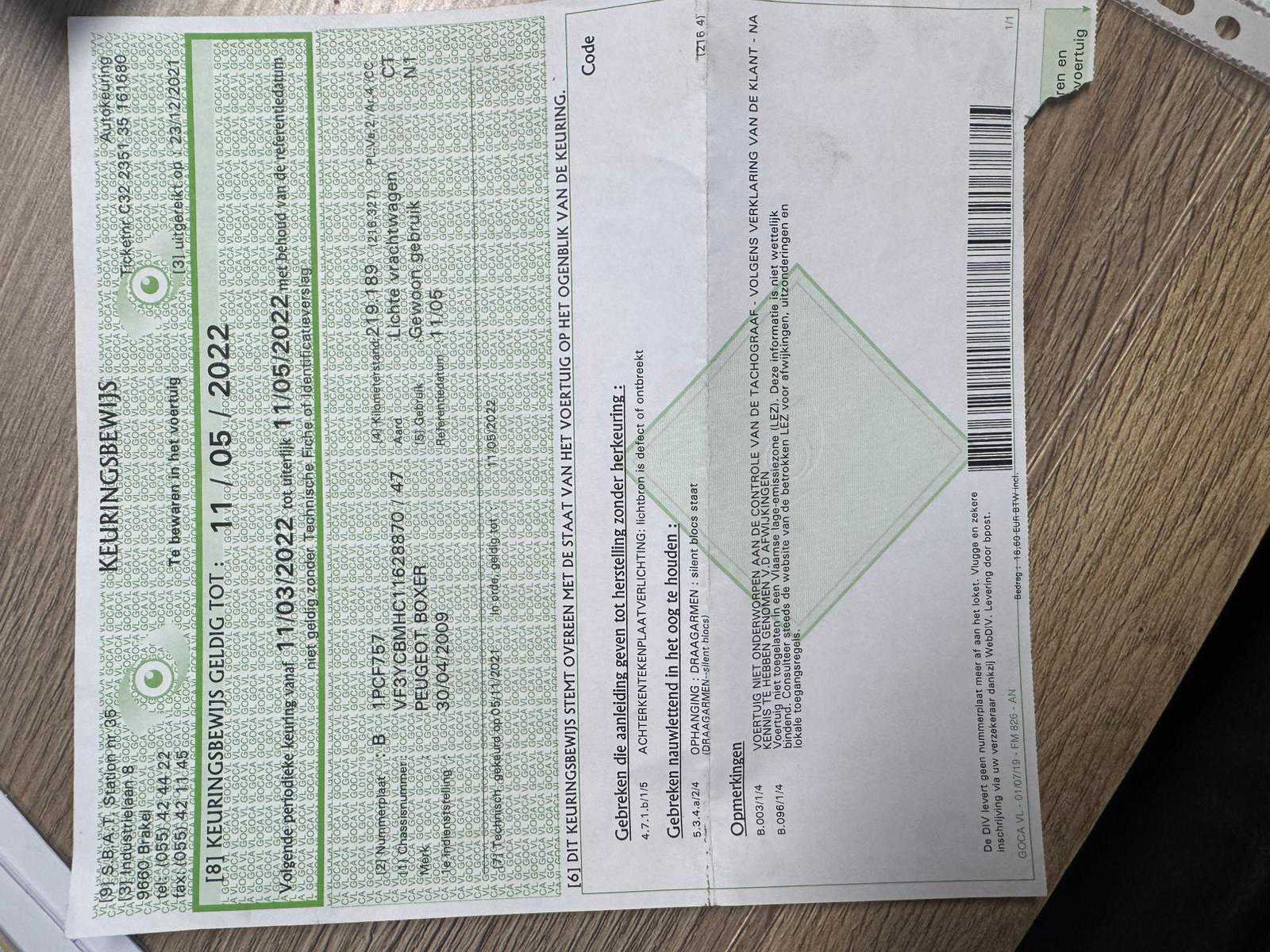 Nee Merk: Peugeot Model: Boxer Bouwjaar: 2009 Afgelezen kilometerstand: 236932km Vermogen (kW): 88kW Chassisnummer: VF3YCBMHC11628870 Datum eerste toelating: 30/04/2009 Nationaliteit documenten: Belgisch Start en rijdt: Ja startinformatie : Start en rijdt Inschrijvingsbewijs - deel 1 : Aanwezig Inschrijvingsbewijs - deel 2: Aanwezig
