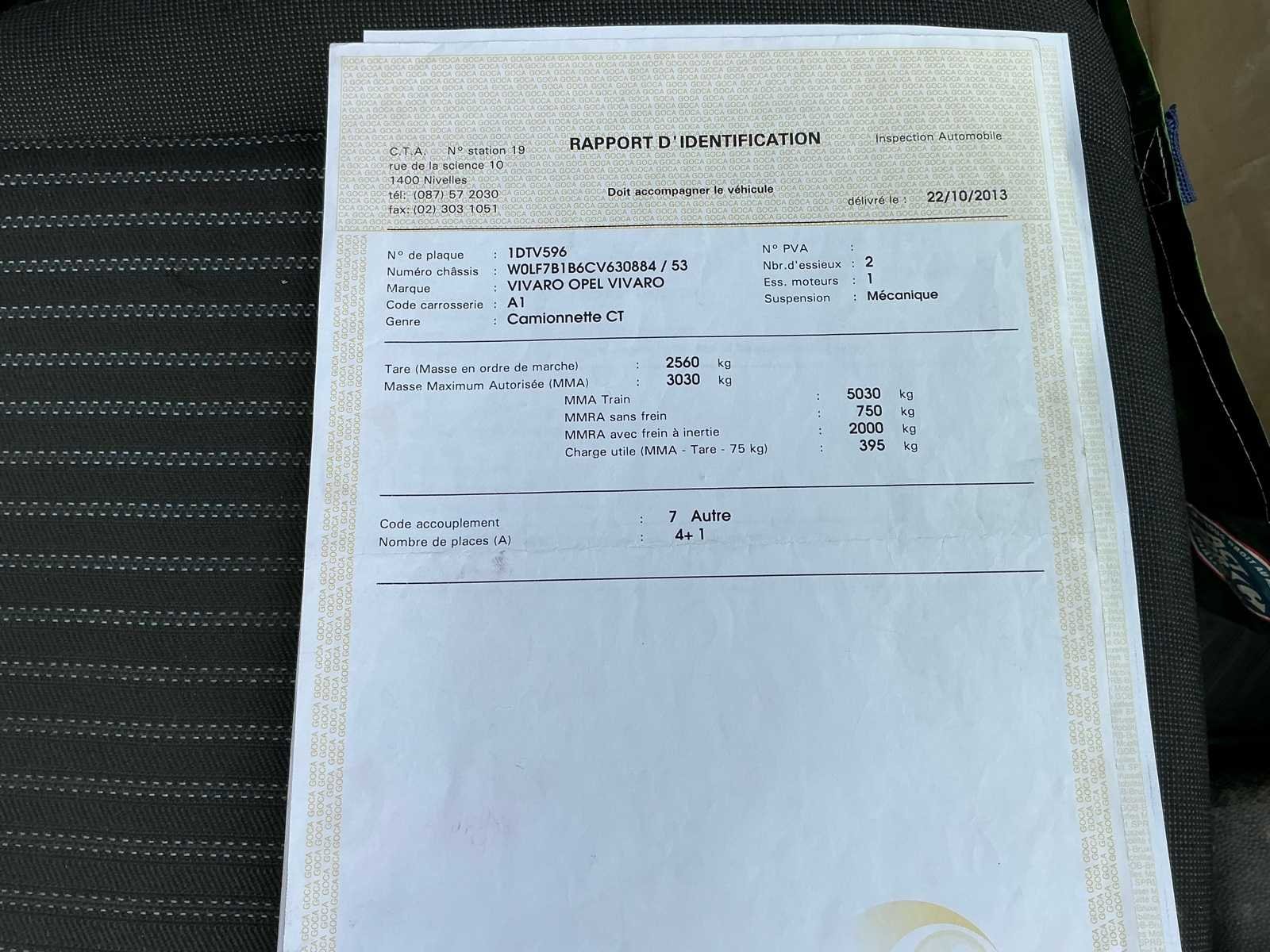 Correcte lichte vracht camionette met airco en veel mogelijkheden, bekijk foto’s, proper interieur gezien zijn leeftijden en goed onderhouden. No Merk: Opel Type: Lichte vracht Model: Vivaro Bouwjaar: 2012 Chassisnummer: WOLF7B1B6CV630884(01) Cilinderinhoud: 1995cc Vermogen (kW): 84kW Brandstof: Diesel Datum eerste inschrijving: 27/08/2012 Datum eerste toelating: 27/08/2012 Aandrijving: Voorwielaandrijving Transmissie: Handgeschakeld Drive type: Front wheel Aantal zitplaatsen: 3 Kleur: Geel-blauw Nationaliteit documenten: België Accessoires - checkbox: Camera Stuurwiel: Links Aantal deuren: 4 Aantal sleutels: 3 Ledig gewicht: 1650kg Laadvermogen: 1200kg Vermogen (pk): 114 Aantal cilinders: 4 Boorddocumenten aanwezig?: true Onderhoudshistorie: Ok Startinformatie: Ok Maximaal trekgewicht ongeremd: 750 Maximaal trekgewicht geremd: 2000