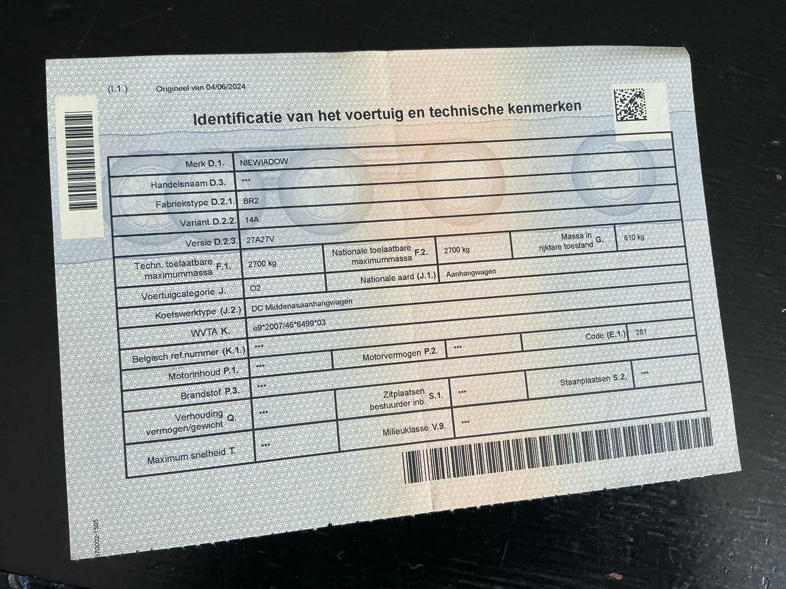 Perfect werkende trailer. No Merk: Niewiadow Type: BR 2 Bouwjaar: 2012 Chassisnummer: SZRBR2000L0014151/28 Aantal assen: 2 Datum eerste toelating: 11/01/21 Hoogte: 62cm Lengte: 552cm Breedte: 200cm