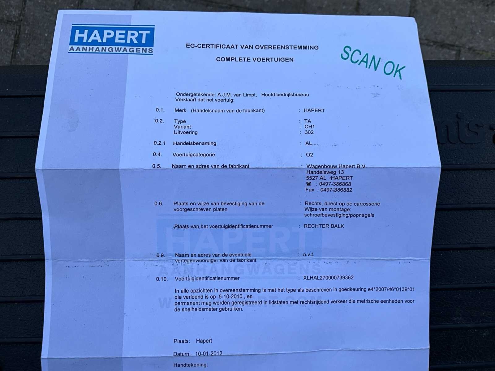 2012 hapert ta / al aanhangwagen mtm 2700kg