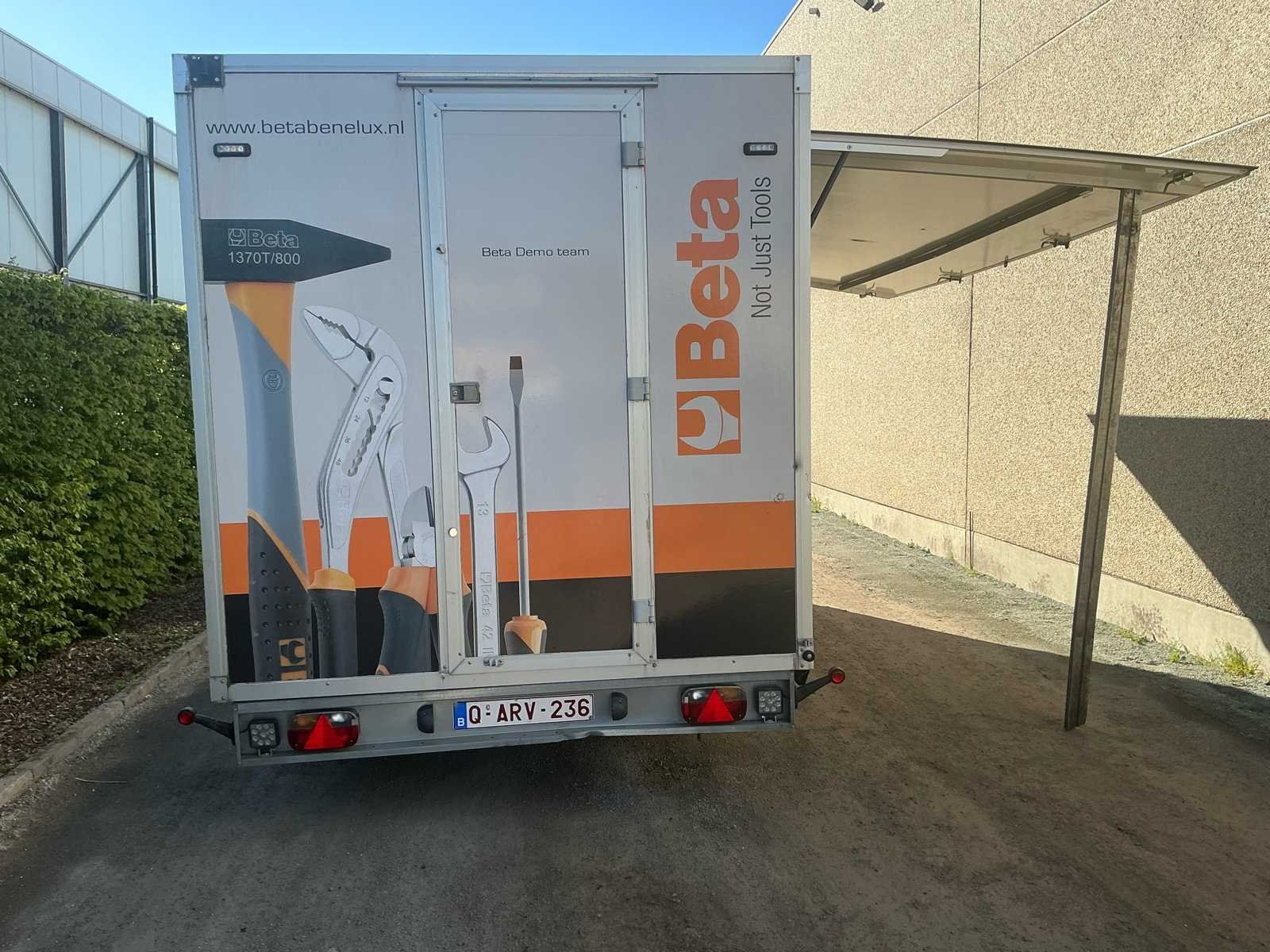 Zeer nette en professioneel ingerichte WM Meyer gesloten aanhangwagen, uitgevoerd als mobiele werkplaats. Dit betreft een ex-Beta demo voertuig, volledig uitgerust met hoogwaardige Beta werkplaatsinrichting en klaar voor onmiddellijk gebruik. De trailer verkeert in zeer goede technische en mechanische staat en is steeds correct onderhouden. Uitvoering / inrichting: Volledig ingerichte Beta werkplaats met werkbanken, opbergsystemen, ladenkasten en gereedschapswand. Voorzien van binnenverlichting, zijluik (opklapbaar) en achterdeur. Aansluitingen voor stroom aanwezig inclusief stroomaggregaat, luchtcompressor en omvormer. Volledig operationeel inzetbaar. Extra troeven: - Ex Beta demo trailer - 4 nieuwe banden met versterkt karkas - Technisch en mechanisch volledig in orde - Keuring geldig tot 19/02/2026 - Ideaal voor service, techniekers, motorsport of mobiele interventies Opmerkingen: <b> Gasveren van het zijluik worden vervangen voor verkoop waardoor de steunbalk niet meer nodig is. Verlichting voor montage aan het luik is aanwezig. Deze mobiele werkplaats is onmiddellijk inzetbaar en perfect voor professioneel gebruik. No Merk: WM Meyer Bouwjaar: 2017 Chassisnummer: WWC263C30GW000001 Aantal assen: 2 Laadbak afmeting l: 550cm Laadbak afmeting b: 221cm Ledig gewicht: 2360kg Laadvermogen: 640kg Gesloten opbouw: true Datum eerste toelating: 15/12/2017 Kentekenpapieren compleet?: true Hoogte: 283cm Lengte: 710cm Breedte: 221cm Nationaliteit documenten: BE