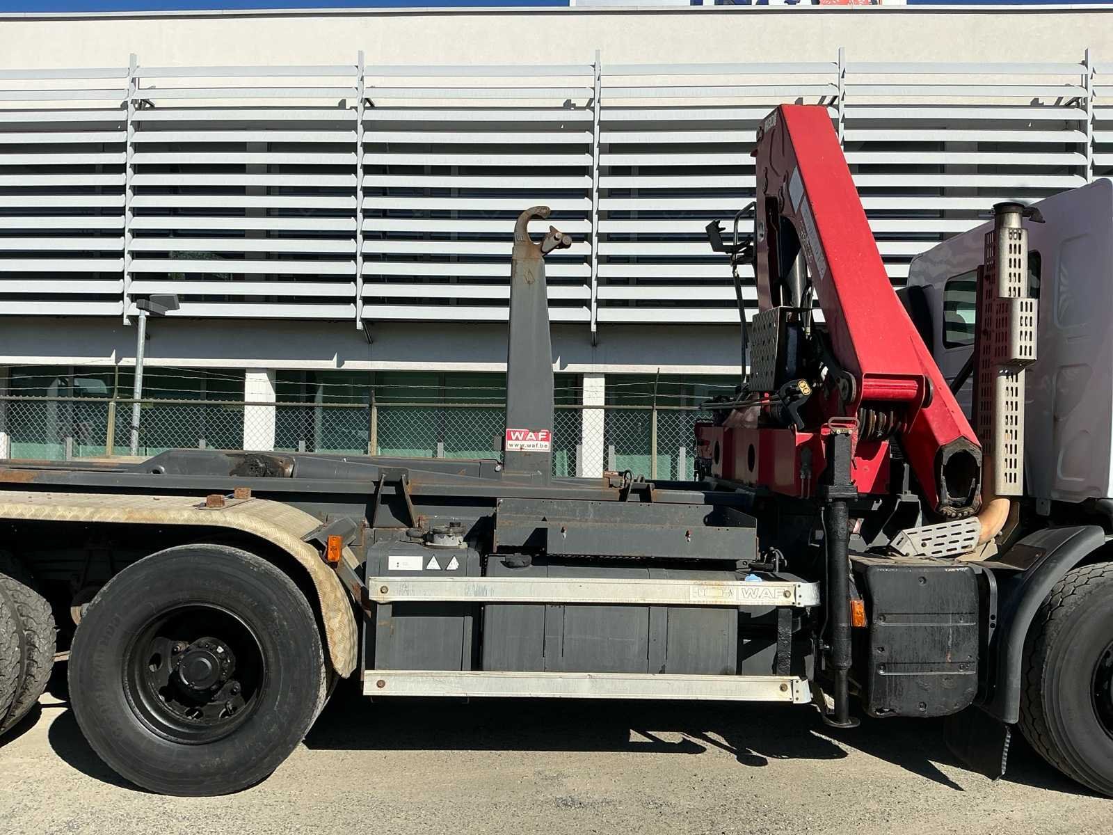 Deze Renault Lander 6x2 vrachtwagen met containerhaaksysteem en autolaadkraan vormt een uiterst veelzijdige en krachtige oplossing voor professioneel transport en containerhandling. Dankzij zijn robuuste constructie en betrouwbare aandrijflijn is dit voertuig uitermate geschikt voor intensief gebruik in de bouw-, afval- en logistieke sector. De vrachtwagen is uitgerust met een WAF containerhaaksysteem en een HMF autolaadkraan met radiografische bediening, wat zorgt voor maximale flexibiliteit bij laden en lossen. De combinatie van kraan en haaksysteem maakt het mogelijk om zelfstandig containers te manipuleren zonder externe hulpmiddelen, wat de operationele efficiëntie aanzienlijk verhoogt. Met een krachtige 10.8L dieselmotor (270 kW), een maximaal toegelaten massa van 26 ton en een treingewicht van 44 ton, biedt dit voertuig uitstekende prestaties en een hoog laadvermogen. De 3-assige configuratie garandeert stabiliteit en optimale gewichtsverdeling, zelfs bij zware toepassingen. Het voertuig beschikt over een geldige technische keuring tot mei 2026 en vertoont normale gebruikssporen conform leeftijd en kilometerstand. Enkele lichte opmerkingen werden vastgesteld bij de laatste keuring, zonder directe impact op de inzetbaarheid. Kortom, een complete en direct inzetbare vrachtwagen met kraan en containersysteem, ideaal voor professionals die op zoek zijn naar een multifunctioneel werkpaard met bewezen prestaties. No Merk: Renault Type: Lander Bouwjaar: 2009 Chassisnummer VIN: VF624DPD000000818 Cilinderinhoud: 10837cc Kilometerstand bij opname: 403422km Datum eerste toelating: 08/06/2009 Type transmissie: Handmatig Aantal assen: 3 Fuel Type: Diesel Emissieklasse: Euro 4 Laadkraan: true Startinformatie: Start, rijdt en remt Afgelezen kilometerstand: 403422km Nationaliteit documenten: België Kentekenpapieren compleet?: true Aantal zitplaatsen: 2 Handgeschakelde versnellingsbak: true Diesel: true