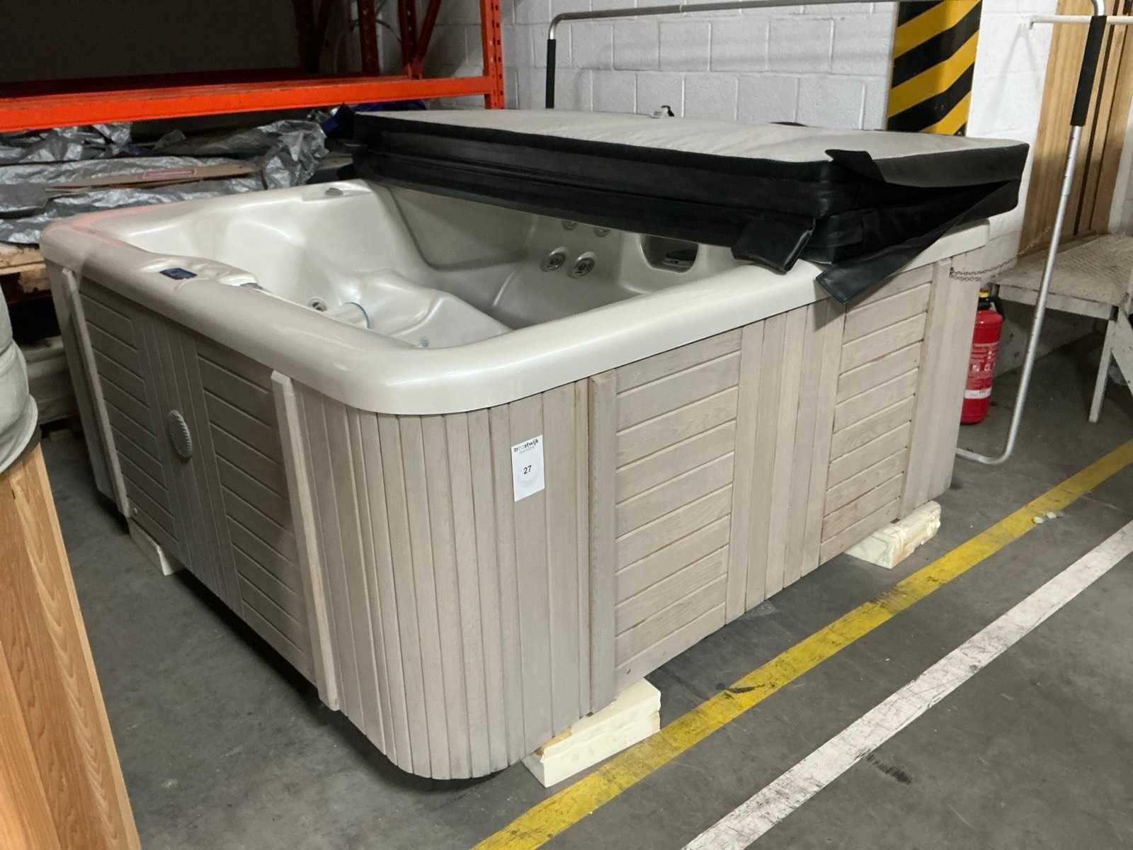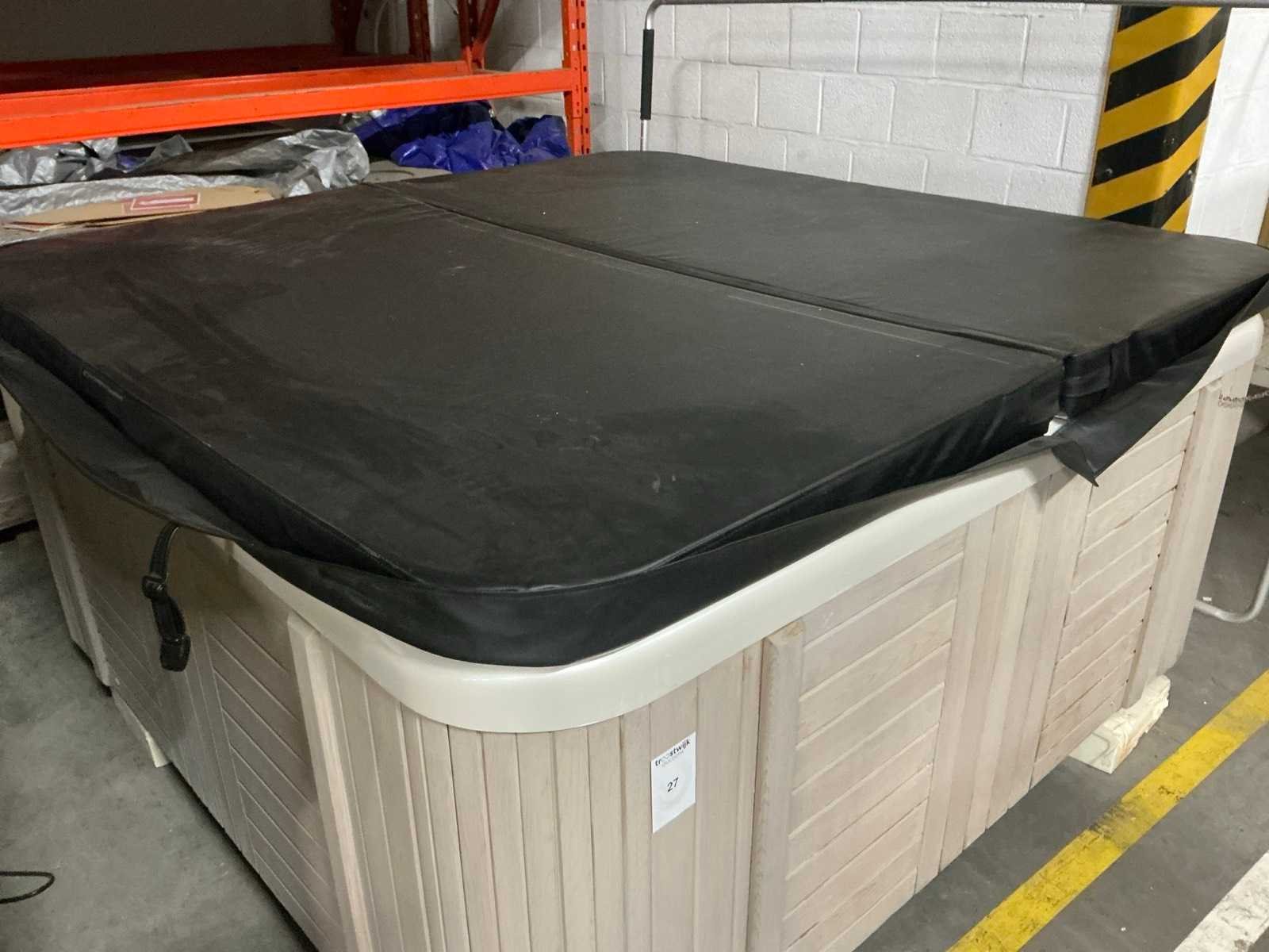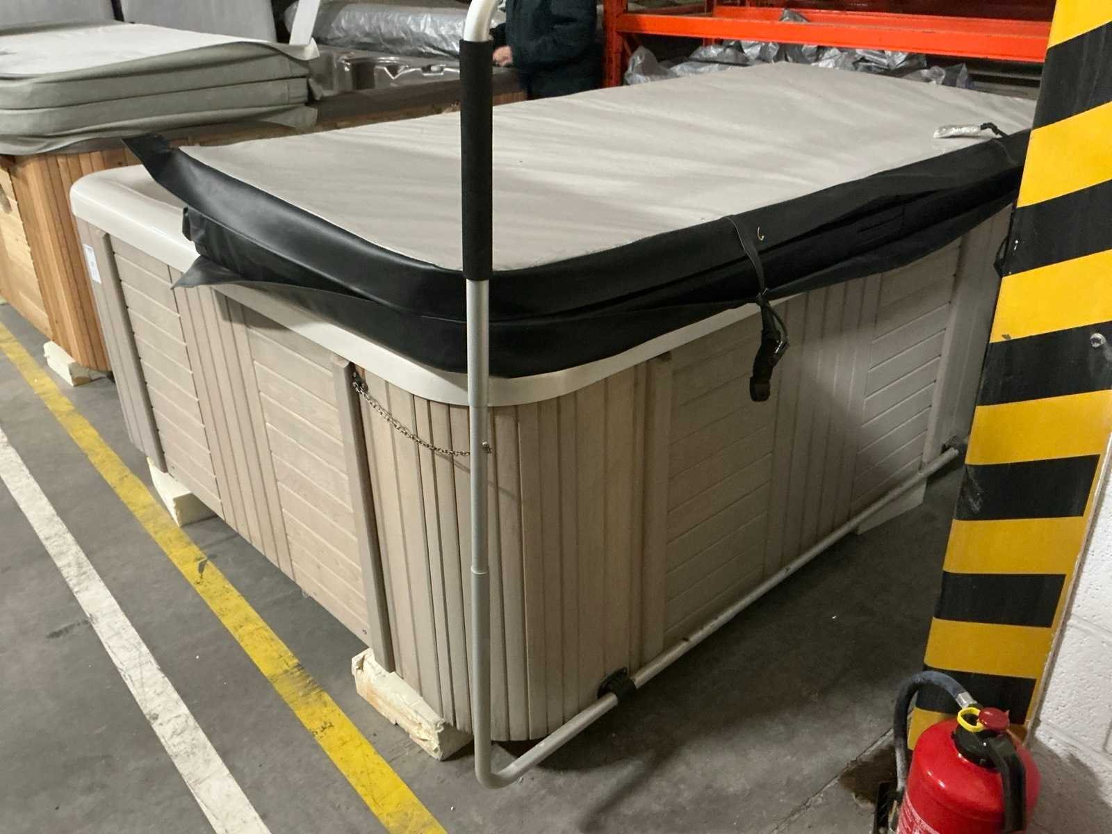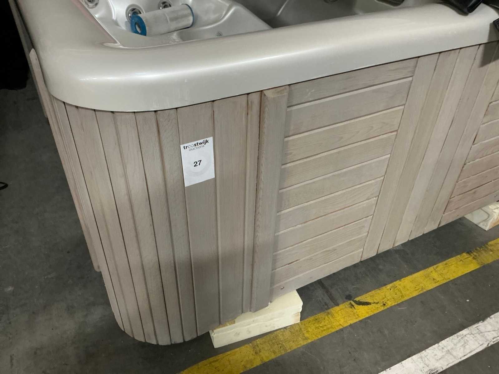 Demo model. Werking en volledigheid niet gekend! Nee Merk: Belle & Moi Model: Siërra Vermogen: 3000W Spanning: 230V Inhoud: 700l Pompen: 1 Jets: 32 Aantal personen: 5 Lengte: 202cm Breedte: 202cm Hoogte: 82cm