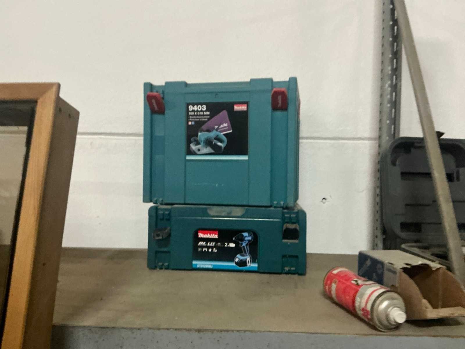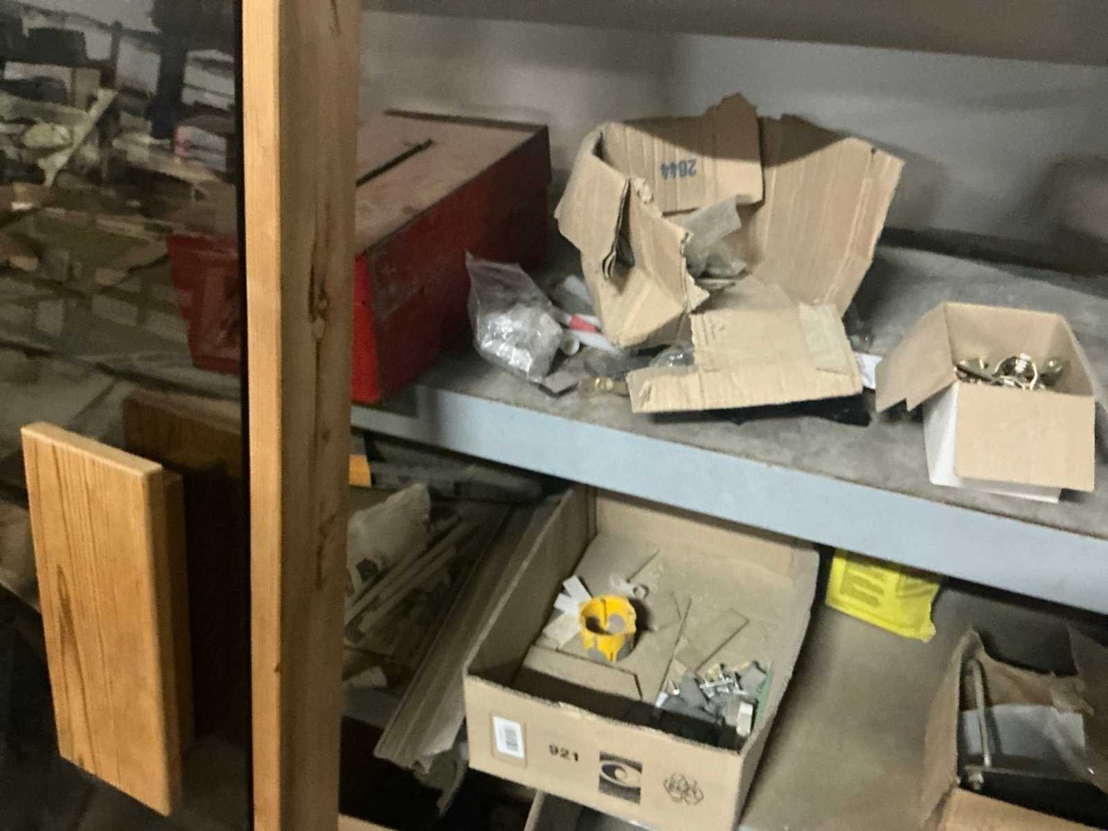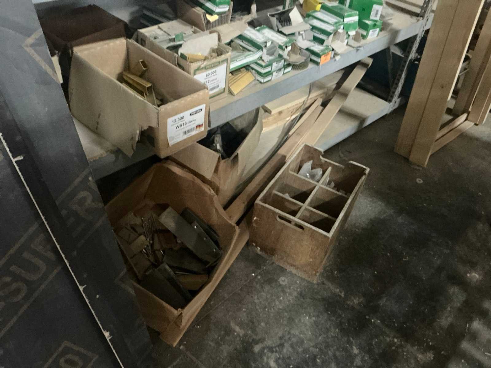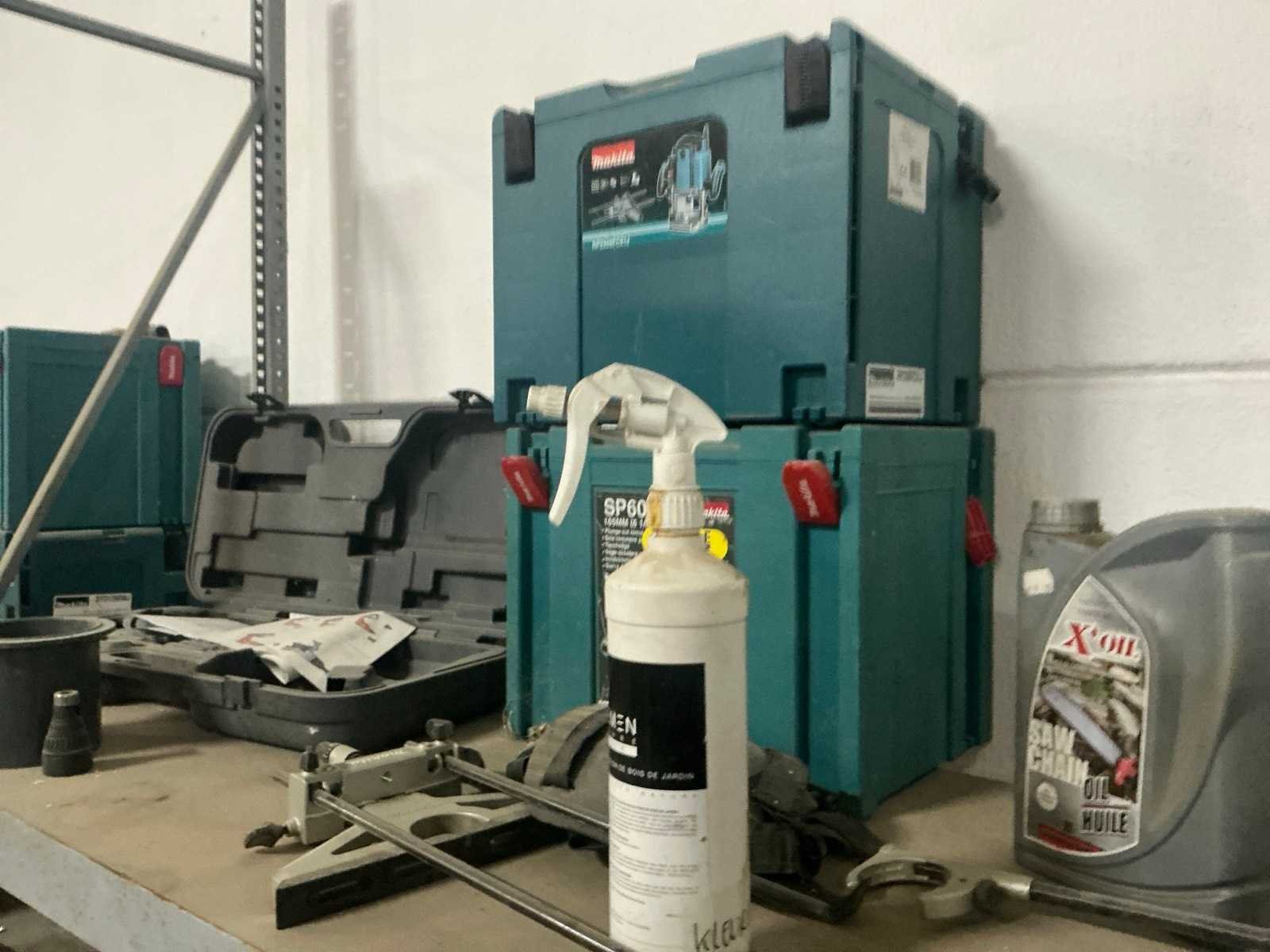 Met inhoud waaronder. Diverse lege machine koffers Makita. Schuurschijfjes. Kleine handgereedschappen enz. Sectie breedte 150-200cm. Circa 10 meter. Nee Aantal staanders: 8 Aantal legborden: 24 Demontabel: true Geconstrueerd: true Totale afmeting Breedte: 600cm Totale afmeting Hoogte: 250cm