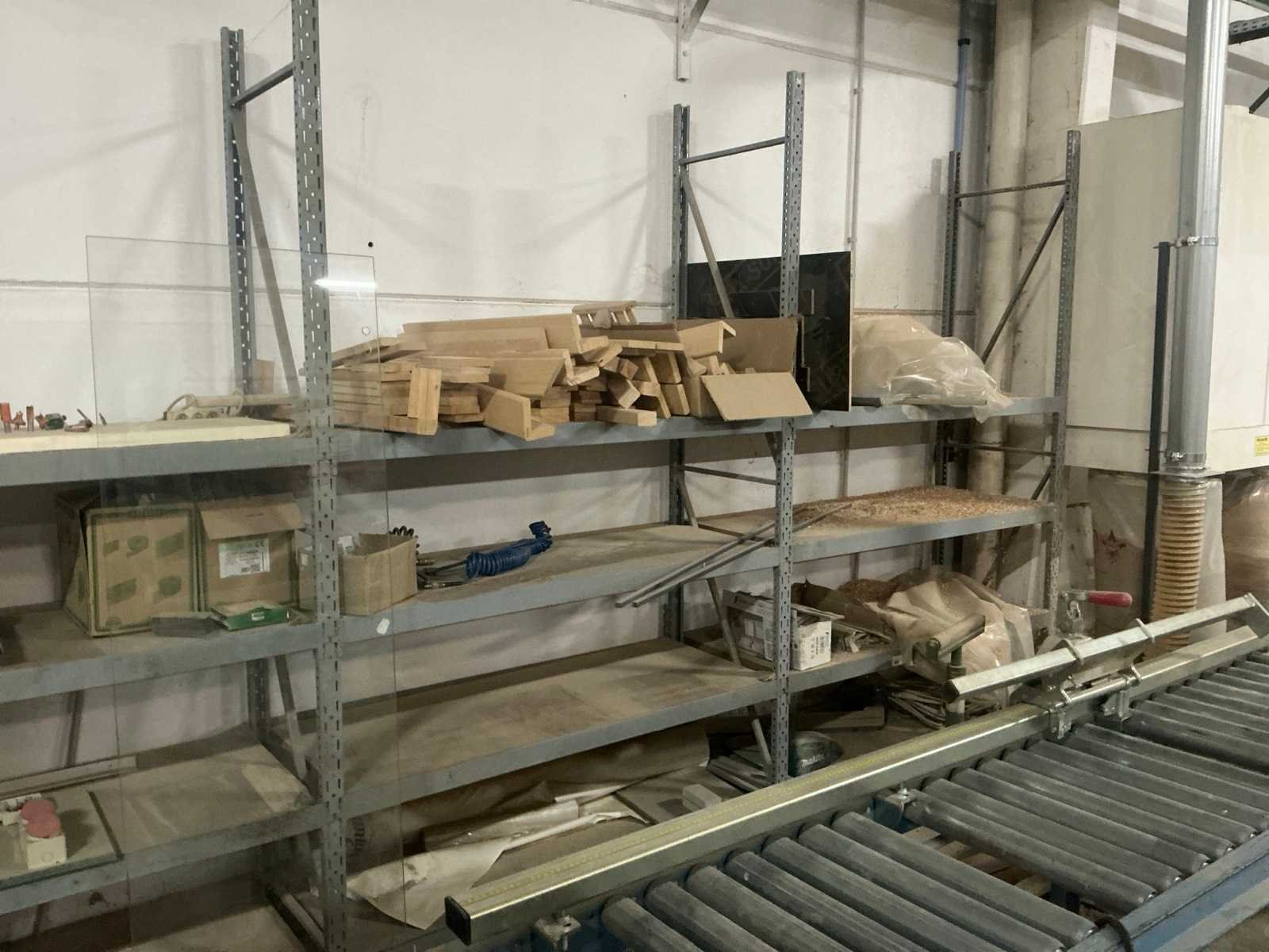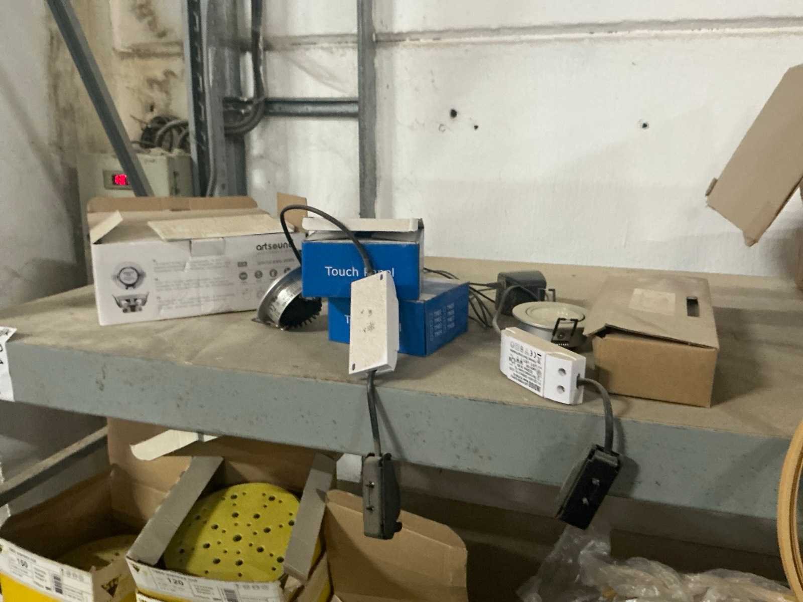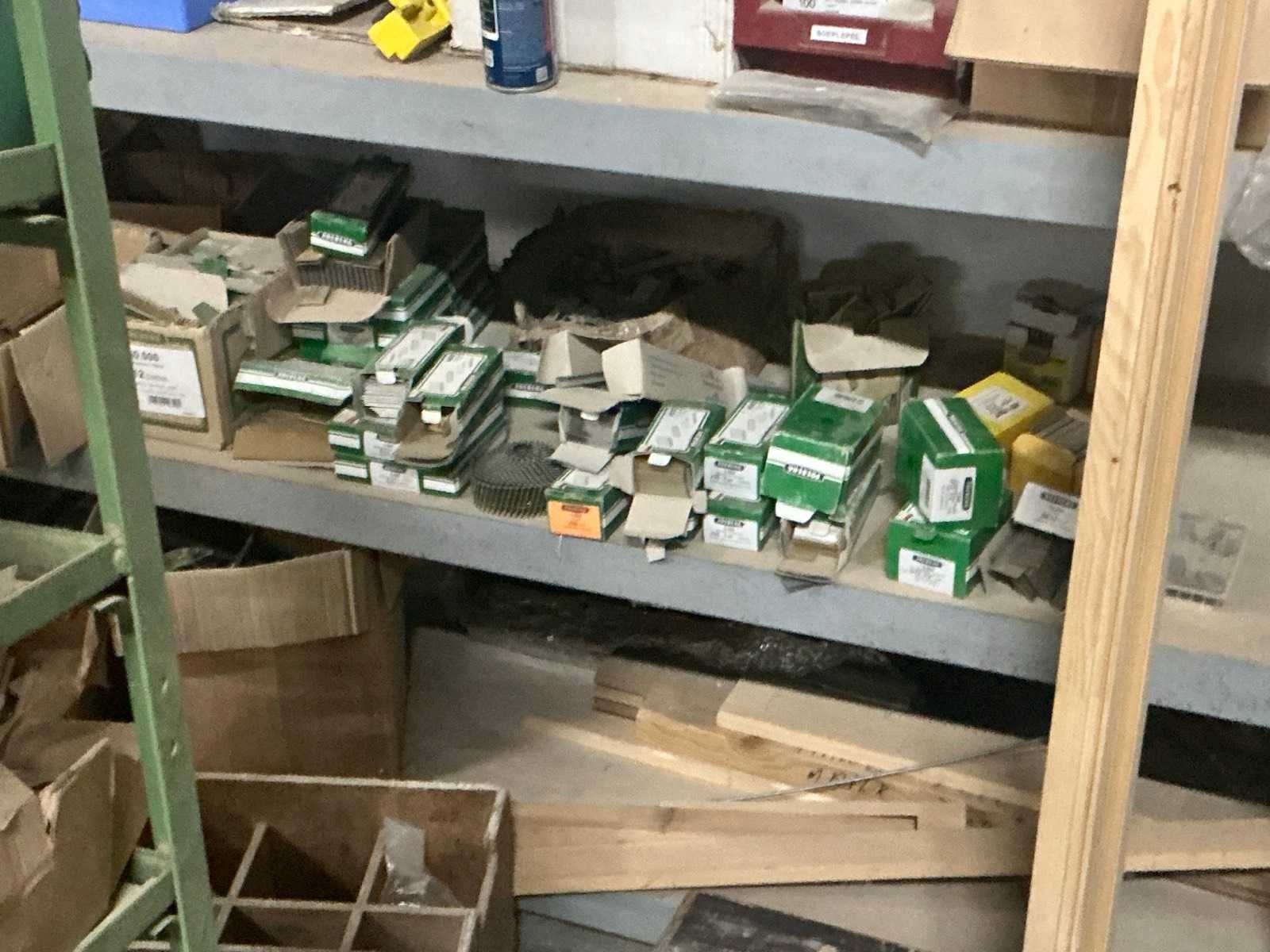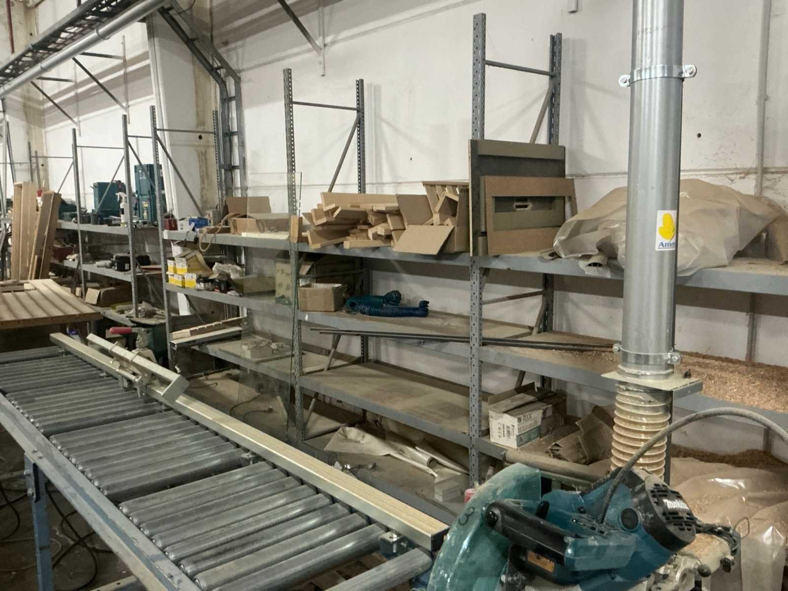 Met inhoud waaronder. Diverse lege machine koffers Makita. Schuurschijfjes. Kleine handgereedschappen enz. Sectie breedte 150-200cm. Circa 10 meter. Nee Aantal staanders: 8 Aantal legborden: 24 Demontabel: true Geconstrueerd: true Totale afmeting Breedte: 600cm Totale afmeting Hoogte: 250cm