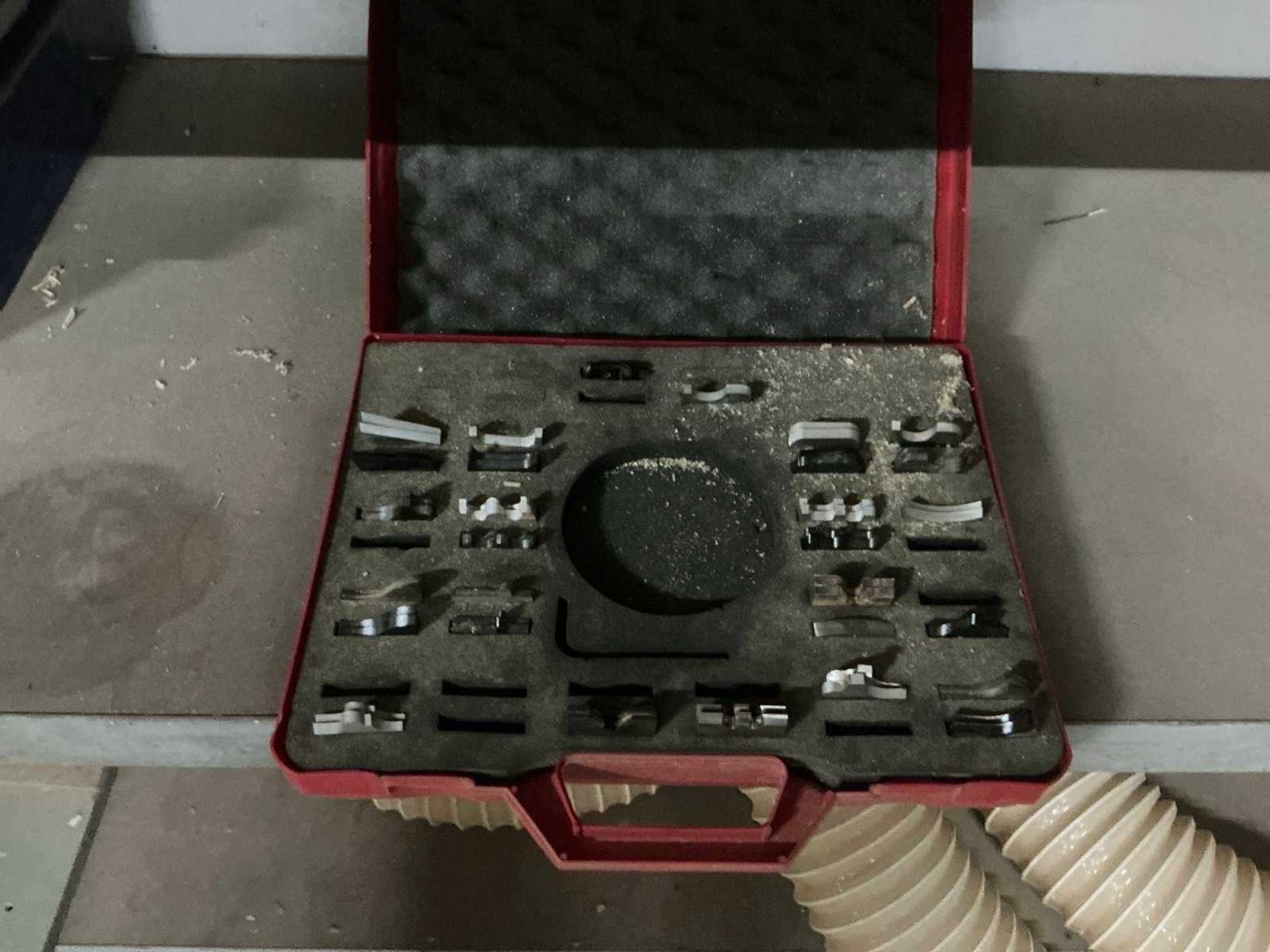 Met diverse zaagbladen en frezen. Inclusief metalen kast 194x92x42cm. Nee Sectie afm. b: 2000mm Sectie diepte: 600mm Aantal staanders: 3 Aantal legborden: 8 Totale afmeting L: 416cm Totale afmeting Breedte: 60cm Totale afmeting Hoogte: 250cm