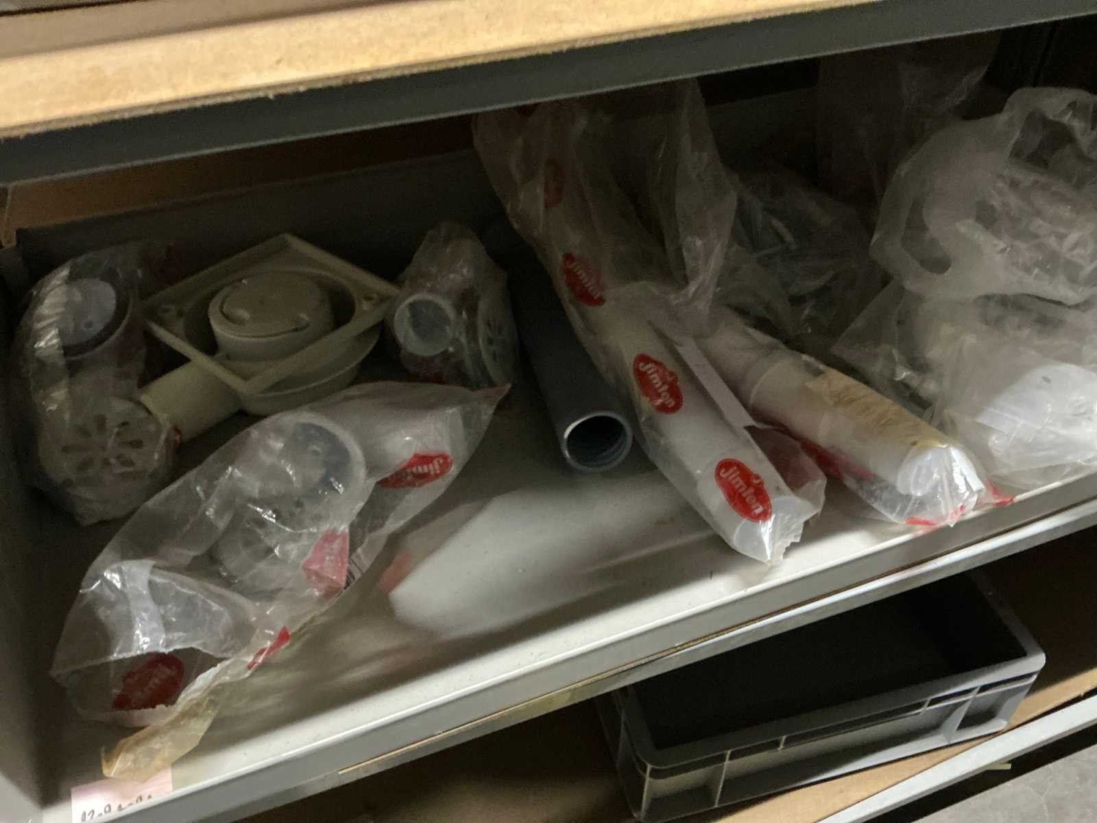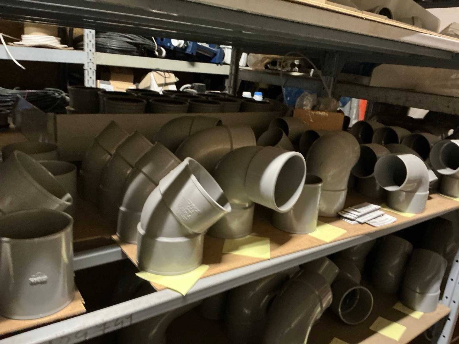 Waaronder pp bochten , moffen, rechte stukken, verloopstukken, enige pvc darmen, anti klik tuinslang alfaflex,… Liggende in rek. Uitgezonderd rek. Afgifte volgens aanwijzing. Nee