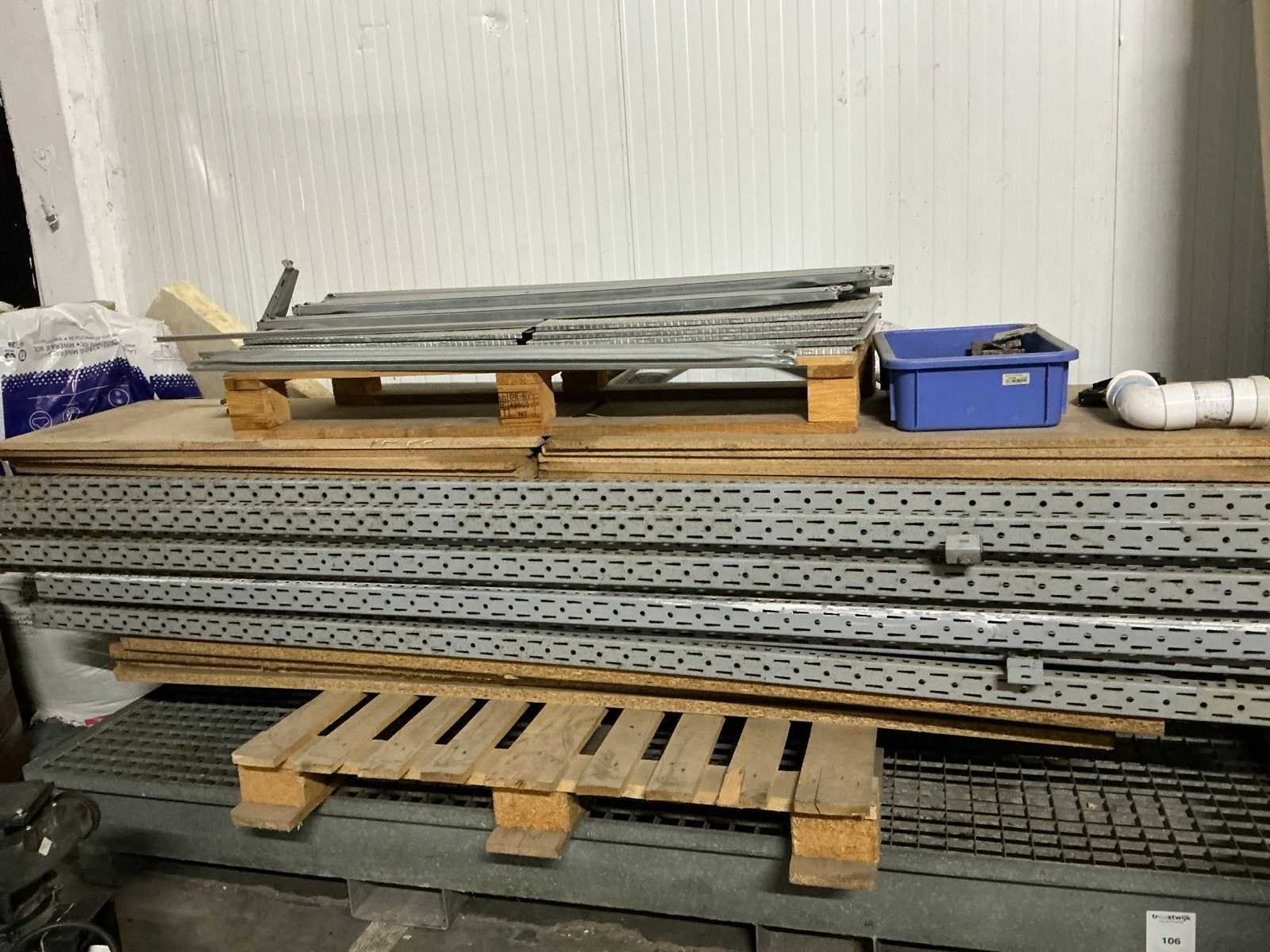 Bestaande uit 6 staanders en 60 liggers compleet met 8 losse staanders Afmeting staander 60 x 250 cm Afmeting ligger 205 cm Uitgezonderd inhoud Nee