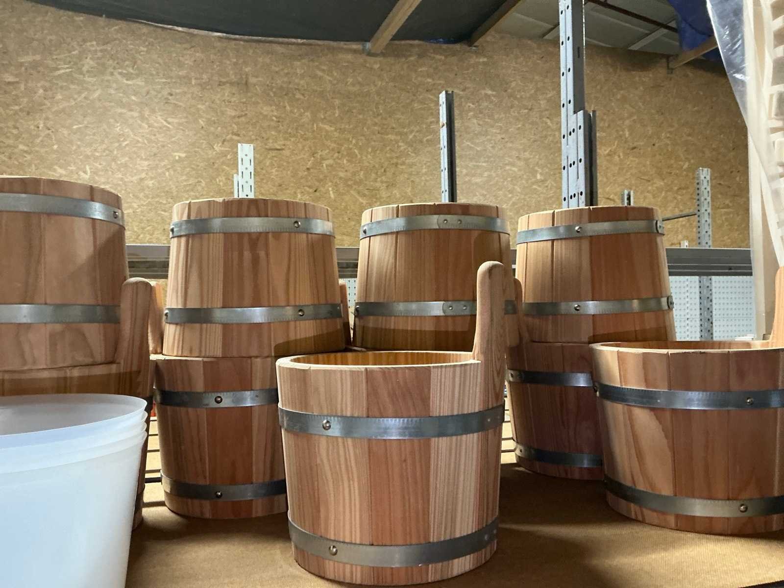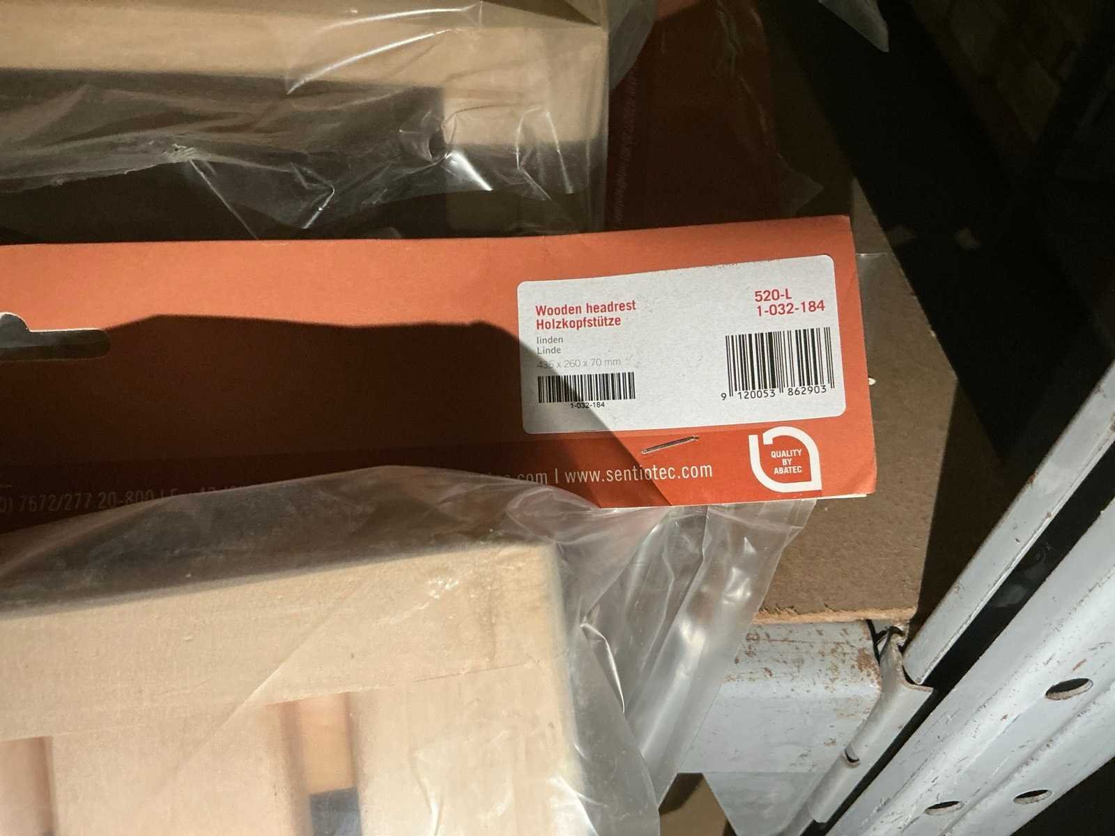 Partij houten hoofd/rugsteunen en sauna toebehoren