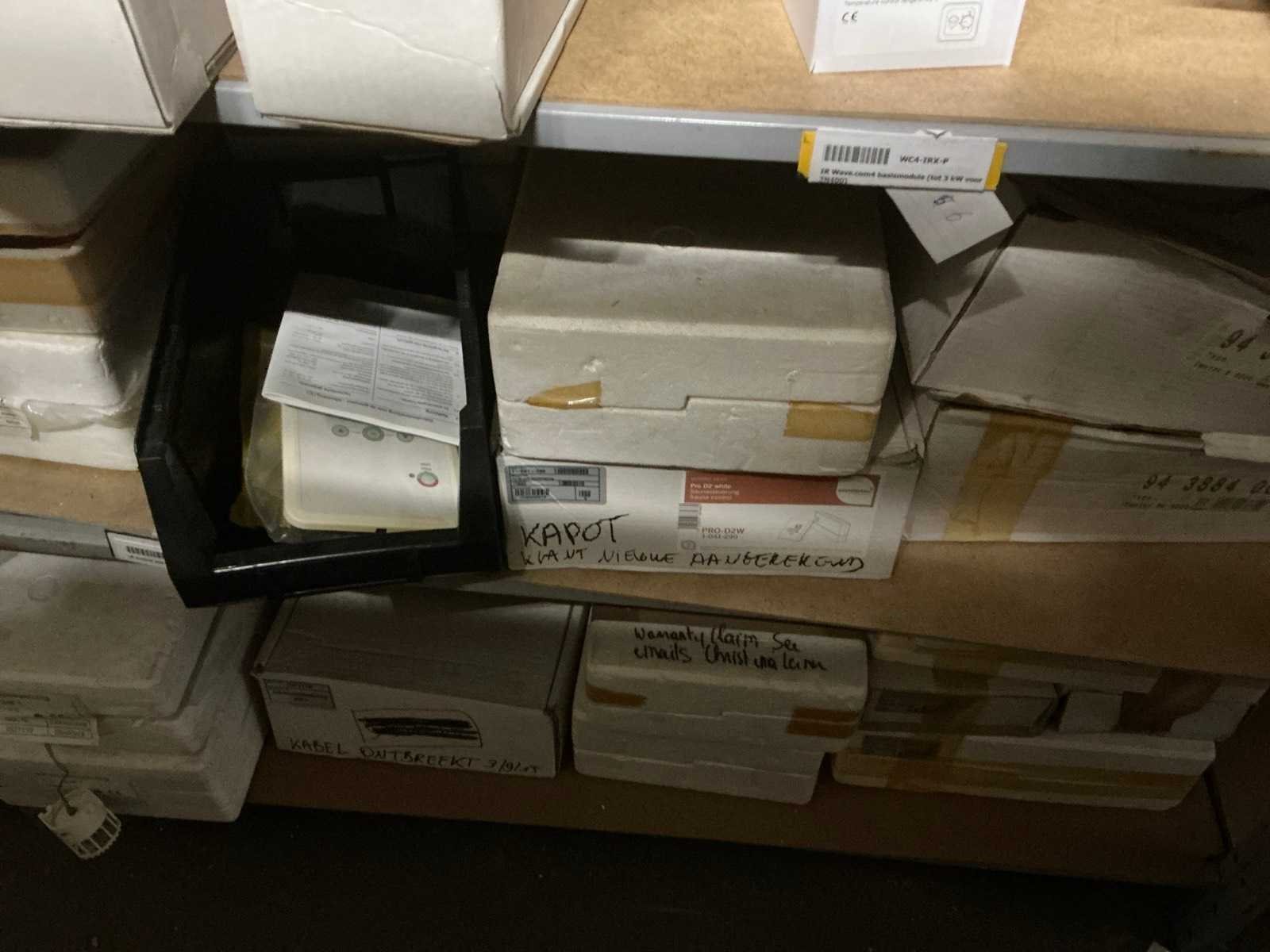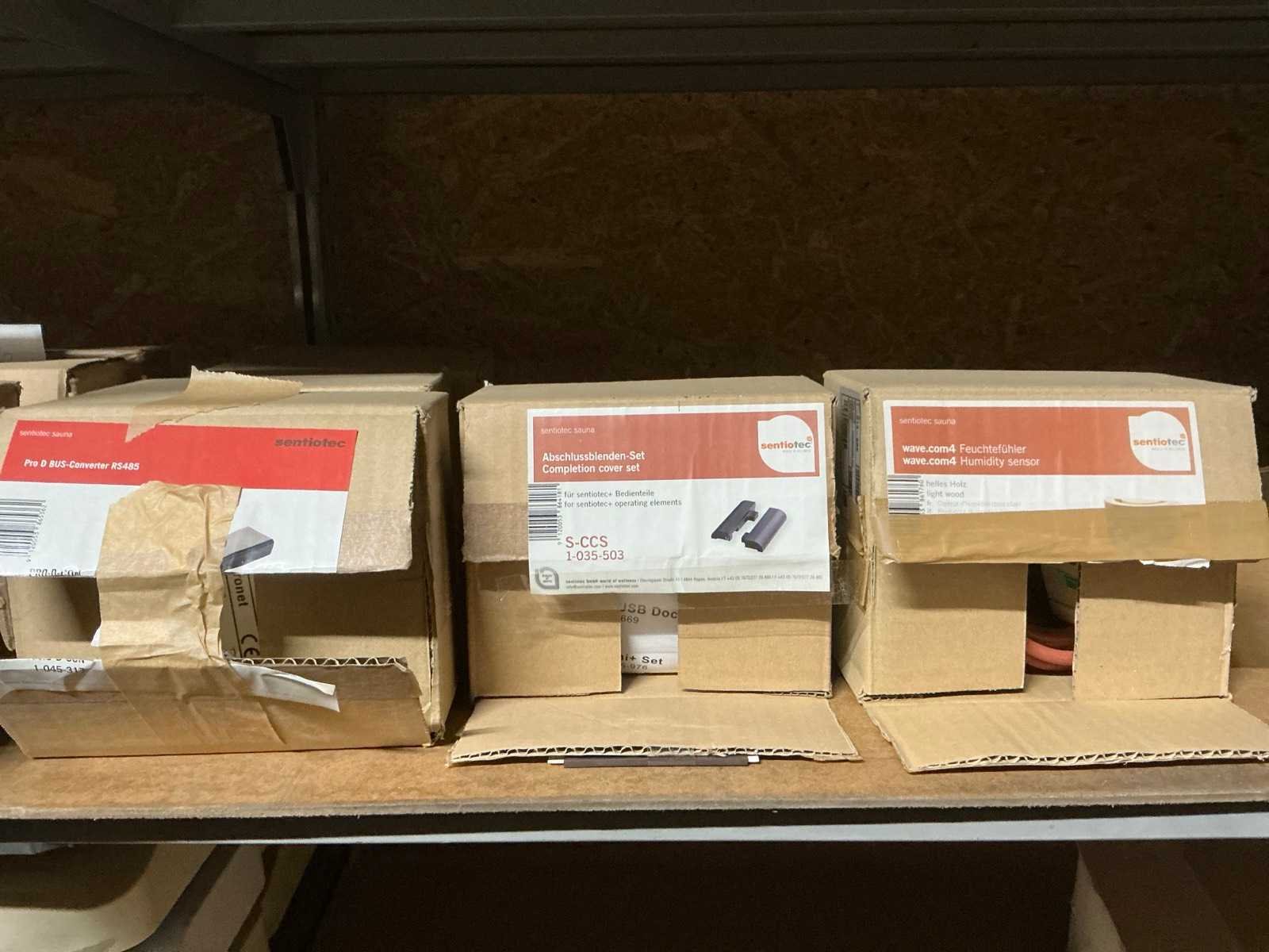 Waaronder abatec, Sentiotec, artsound, indigo, Helo, sawotec Waaronder diverse sauna en infrarood regelaars, bankvoelers, webservers, power elementen, basismodules, geluid en licht regelaars, uitbreidings printplaten, verlichting, speakers, heatingelementen, stoomcilinders, controle units, Uitgezonderd rek en genummerde kavels Nee