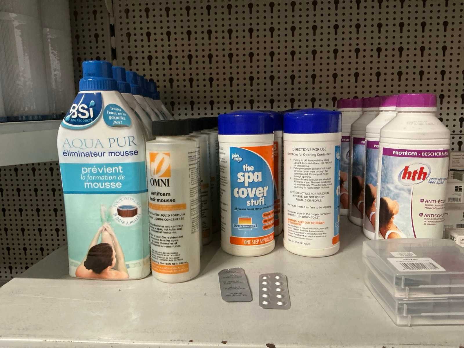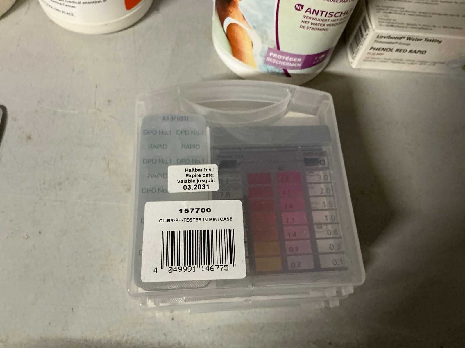 Waaronder hth,bsi, tintometer waaronder beschermer, waterstofsulfaat, watertester, antischuimmiddel, vlokmiddel, onderhoudskit voor hout, PH regelaar, chloor, vlotters, enzovoort Nee