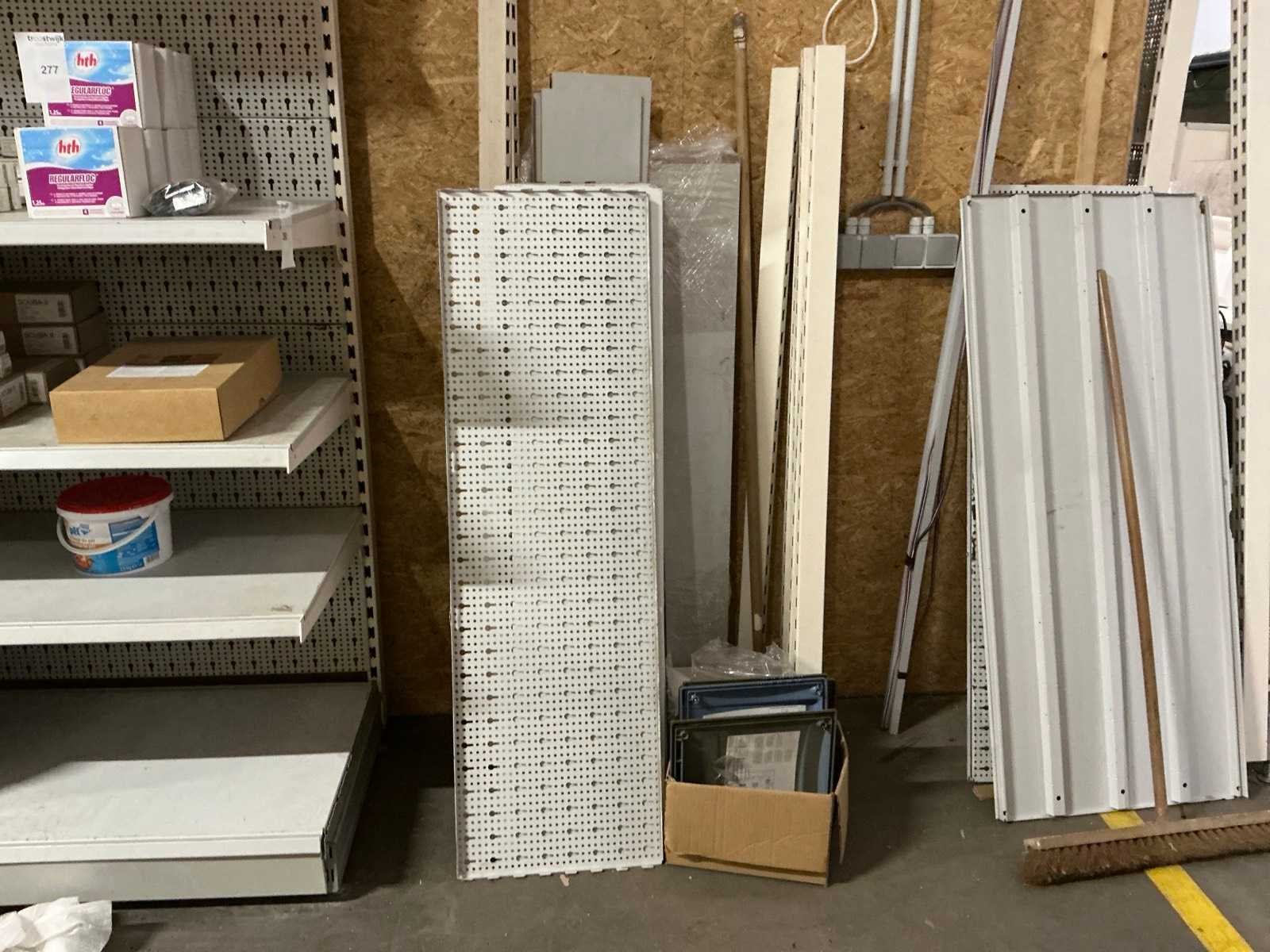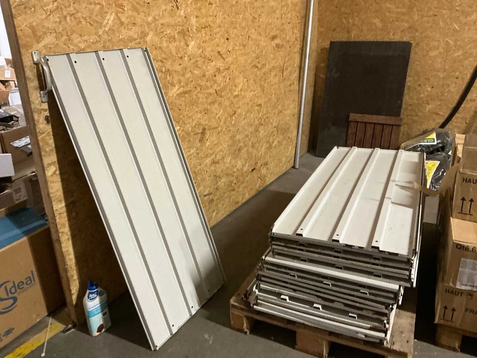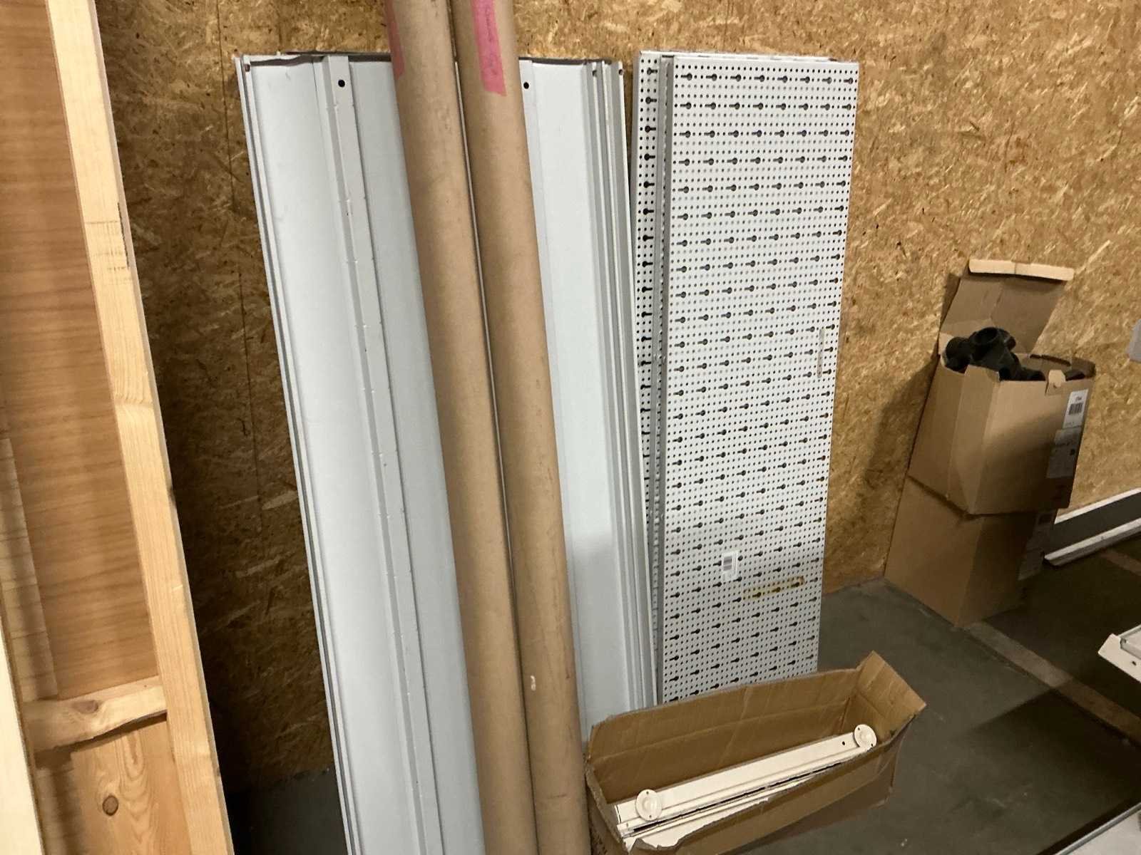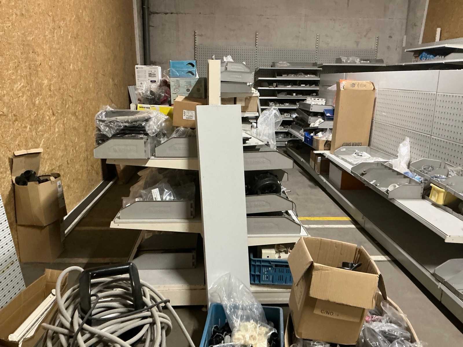 Bestaande uit 14x staander afmeting: 60 x 250 cm 13x staander met afmeting 110 x 160 cm partij diverse leggers met afmeting 133 x 60 cm compleet met partij diverse losse onderdel voor rek Uitgezonderd inhoud, legbakjes en genummerde kavels Nee