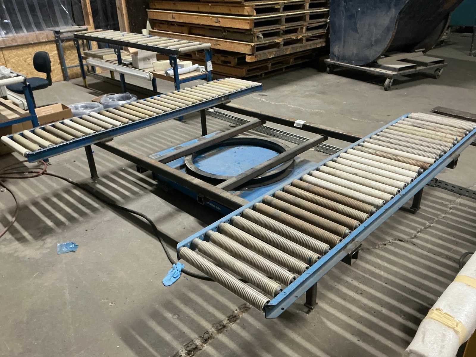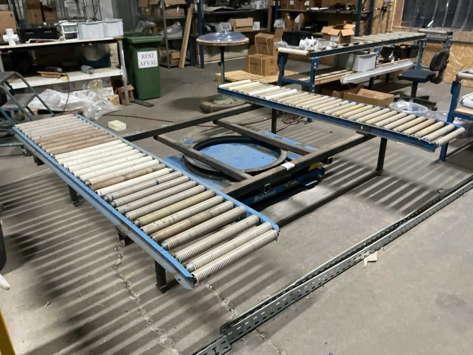 Heftafel met gelaste manuele draaikrans en 2x Moody rollerbaan. Zonder gereedschap Nee Merk: Bishamon Type: E7 Up EZU-15 Bouwjaar: 2003 Hijsvermogen: 750kg Totale afmeting L: 2490mm Totale afmeting Breedte: 2330mm Totale afmeting Hoogte: 530mm