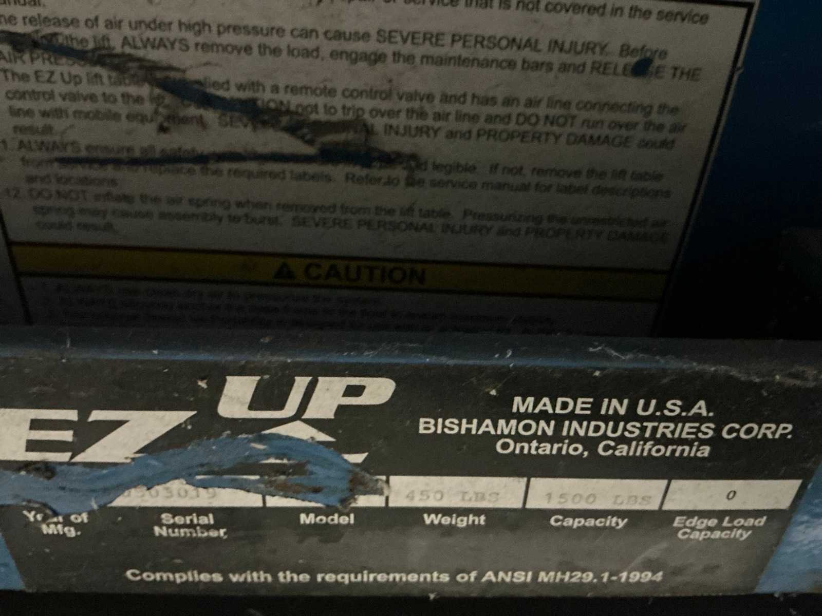 2003 bishamon e7 up ezu-15 pneumatische heftafel