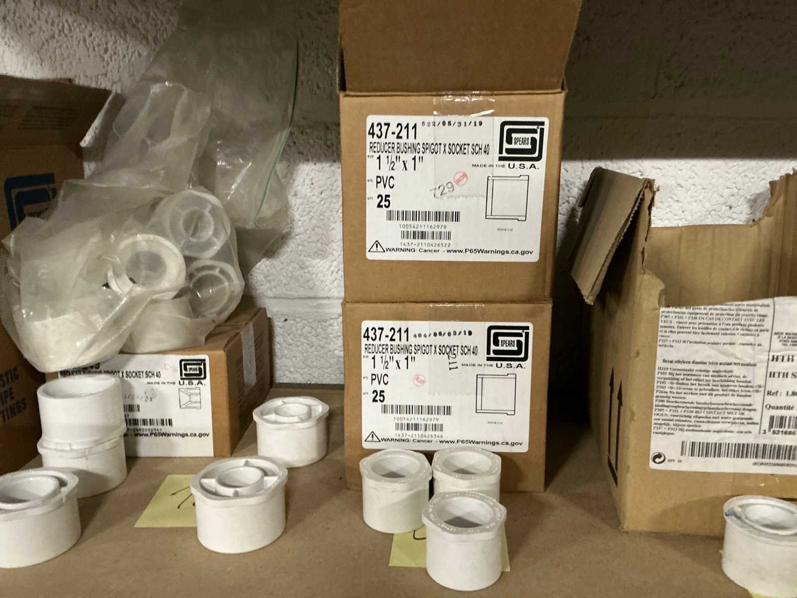 Afmeting staander hoogte 183 cm Afmeting legbord 120 x 40 cm Compleet met inhoud inhoudende partij pvc bochten, reducties, t-stukken, bark manifons, sweep sockets,bauchings, enzovoort Nee Aantal staanders: 36 Aantal liggers: 26