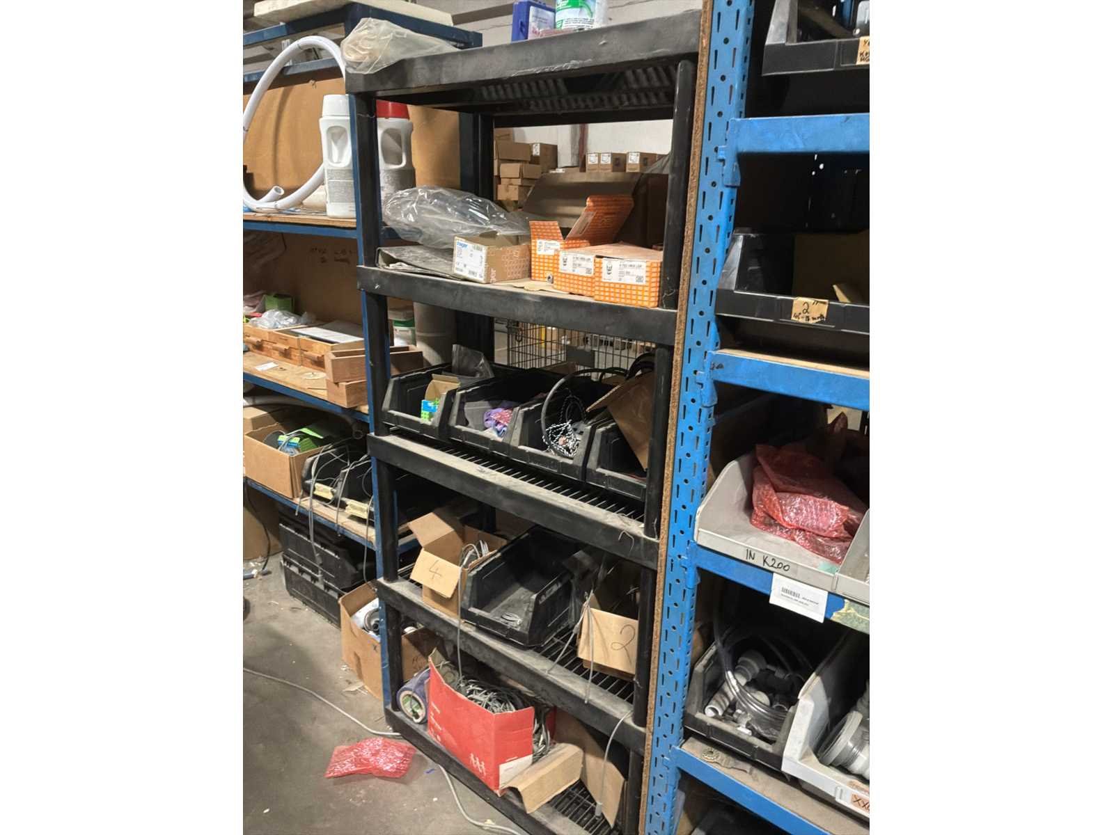 Inhoud : plastieken bakken, reserveonderdelen voor jacuzzi, … 1 rek niet demonteerbaar van 213 x 40 x 200 cm, 1 Magazijnrek van 90 x 45 x 180 cm, 1 demonteerbaar rek met 2 staanders van 45 x 200 cm en 12 leggers met lengte van 200 cm Nee