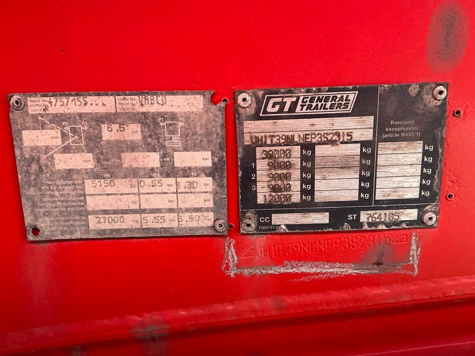 Opgelet Nederlandse boorddocumenten, APK VERVALDATUM: 23/09/2025, massa ledig voertuig: 6900kg, Max.Massa voertuig: 39000kg, laadvermogen,: 32100kg Nee Merk: Benalu Type: T39NLNEP Bouwjaar: 2003 Chassisnummer VIN: VH1T39NLNEP3S2315 Kenteken: OH06HK Datum eerste toelating (NL): 15/09/2003 APK vervaldatum: 23/09/2025
