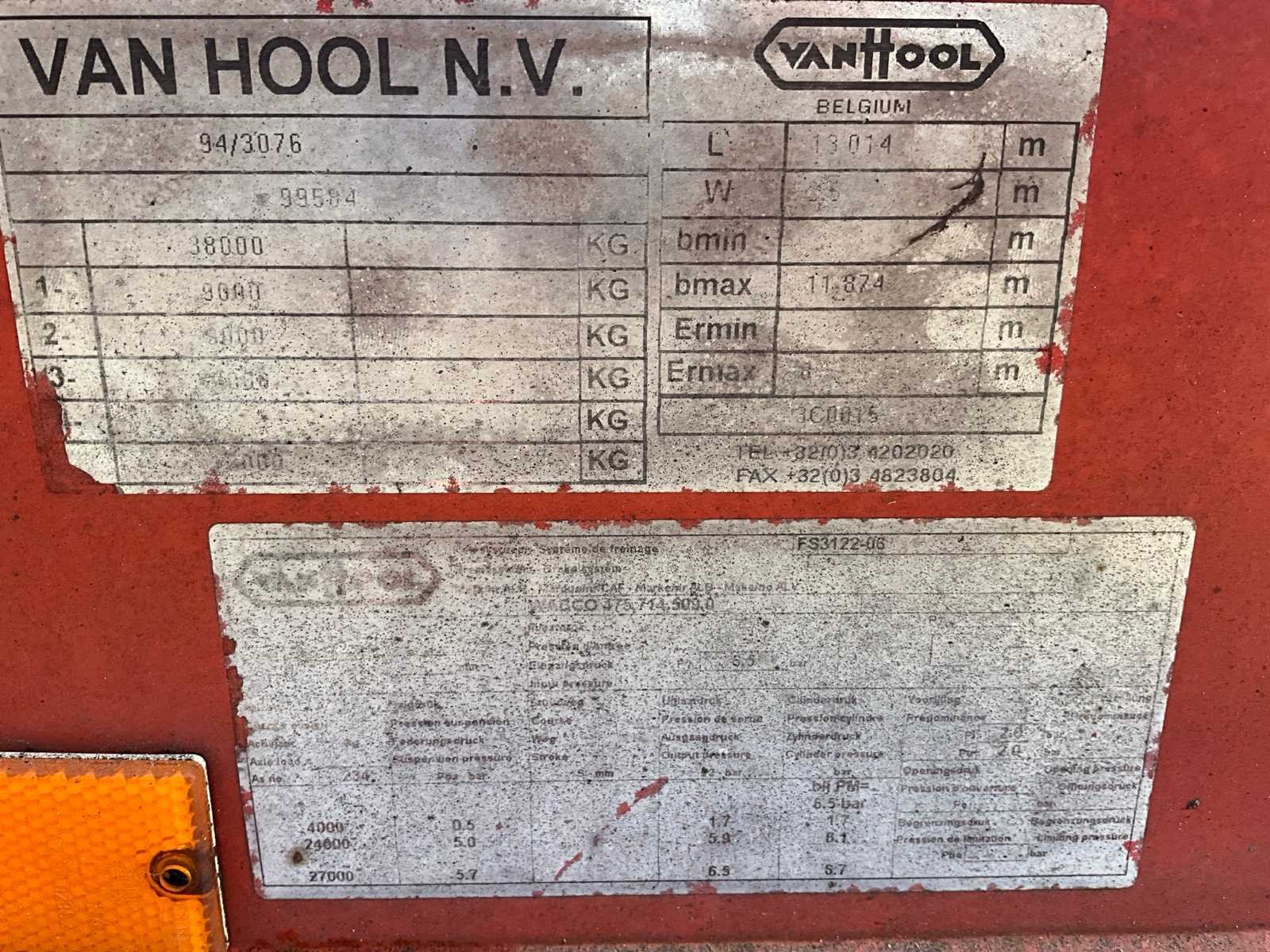 NA TE ZIEN!!, voorzien van achterste steunvoeten, kipcilinder en koppelplaat los op chassis, ZONDER BOORDDOCUMENTEN Nee Merk: Van Hool Type: 94/3076 Bouwjaar: 2000 Chassisnummer VIN: 99584 Aantal assen: 3 Laadvermogen: 38000kg Totale afmeting L: 13014mm Totale afmeting Breedte: 2450mm Totale afmeting Hoogte: 2000mm