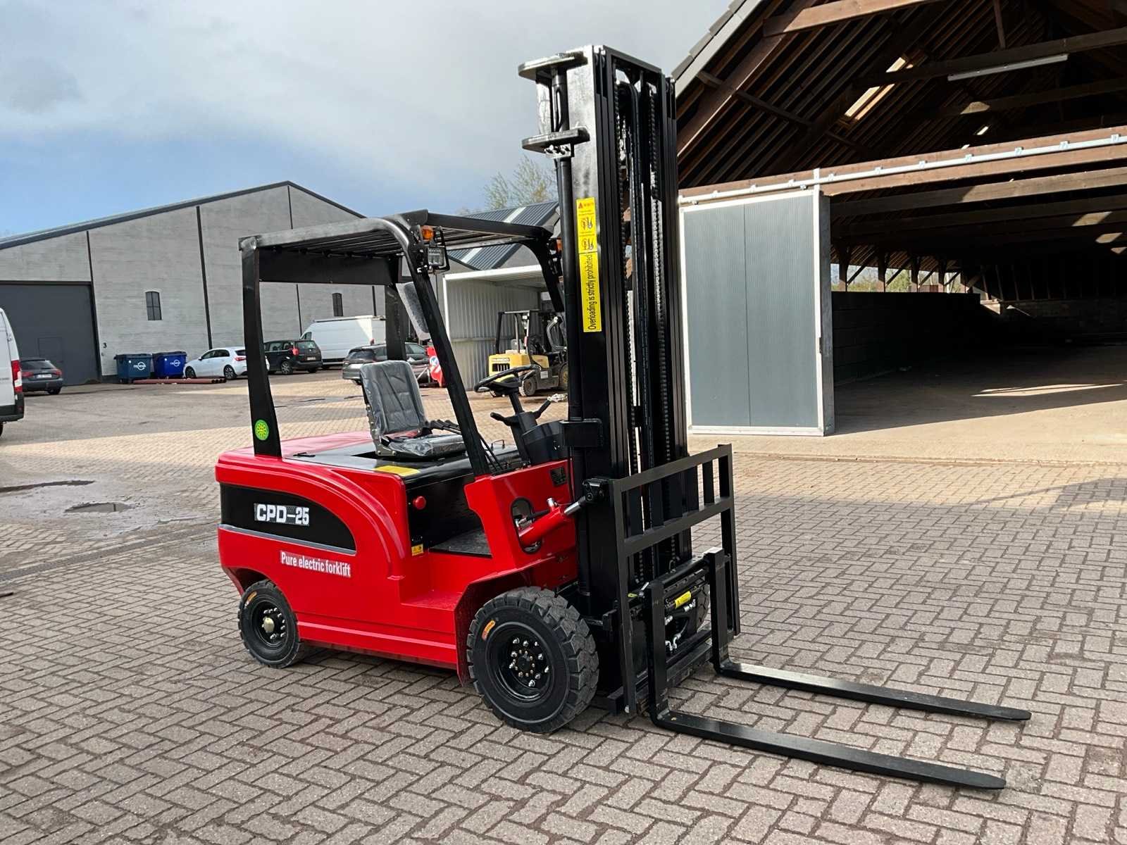 Incl. Oplader Nee Merk: HUATENG Type: CPD-25 Bouwjaar: 2025 Serienummer: HT2025112102-05 Afgelezen urenstand: 4.9 Side-shift: true Triple mast: true Hefvermogen: 2500kg Lepellengte: 1200mm Max. hefhoogte: 6000mm Vol rubber banden: true Minimale doorrijhoogte: 2610mm Totale afmeting L: 2400mm Totale afmeting Breedte: 1200mm