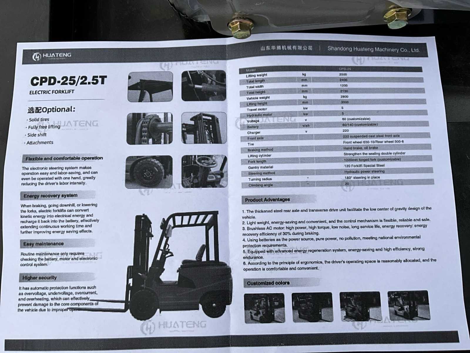 2025 huateng cpd-25 elektrische vorkheftruck