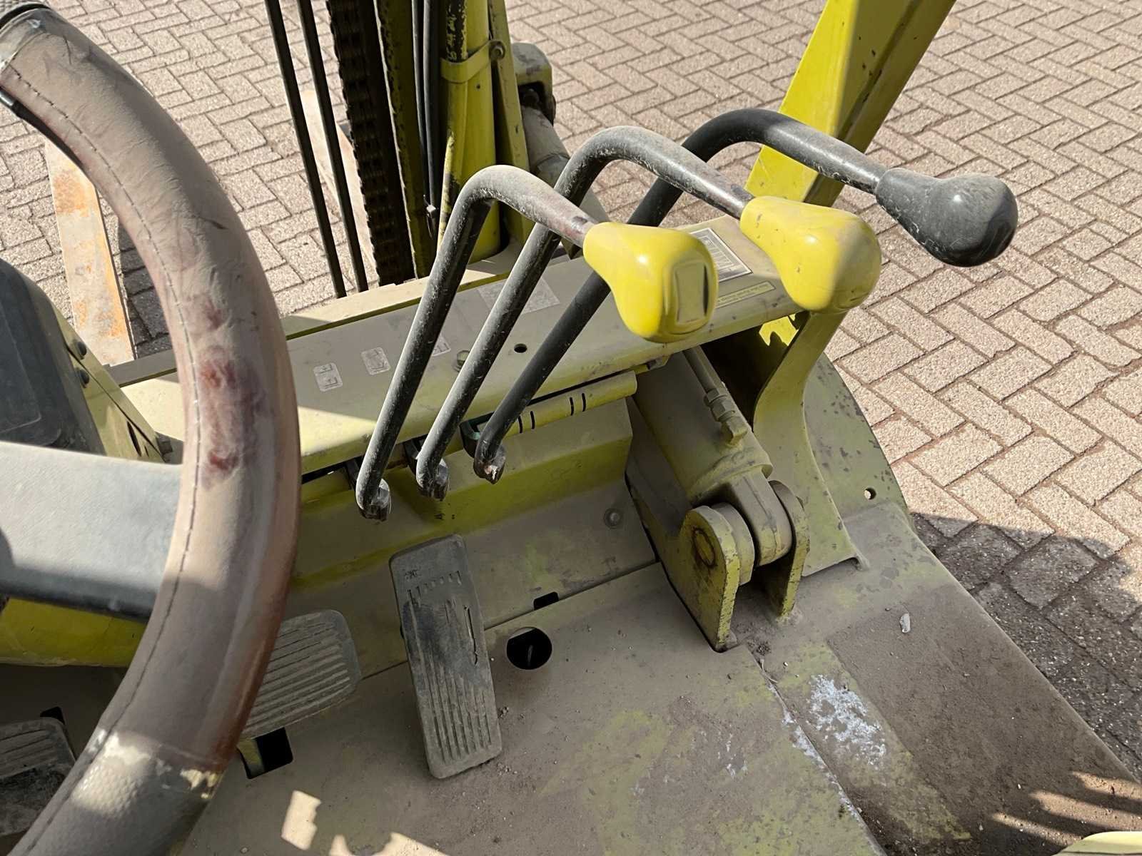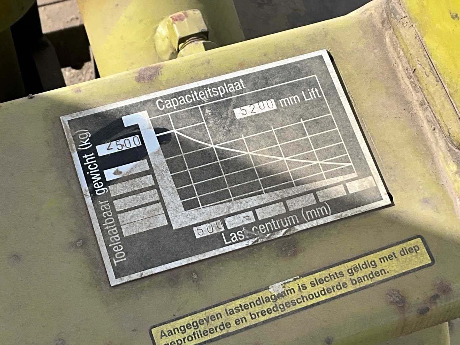 No Merk: Mitsubishi Type: FG35 Bouwjaar: 1990 Serienummer: F29-00062 Afgelezen urenstand: 4276 Duplex mast: true Eigen gewicht: 5200kg Hefvermogen: 3800kg Max. hefhoogte: 5200mm Vol rubber banden: true LPG: true