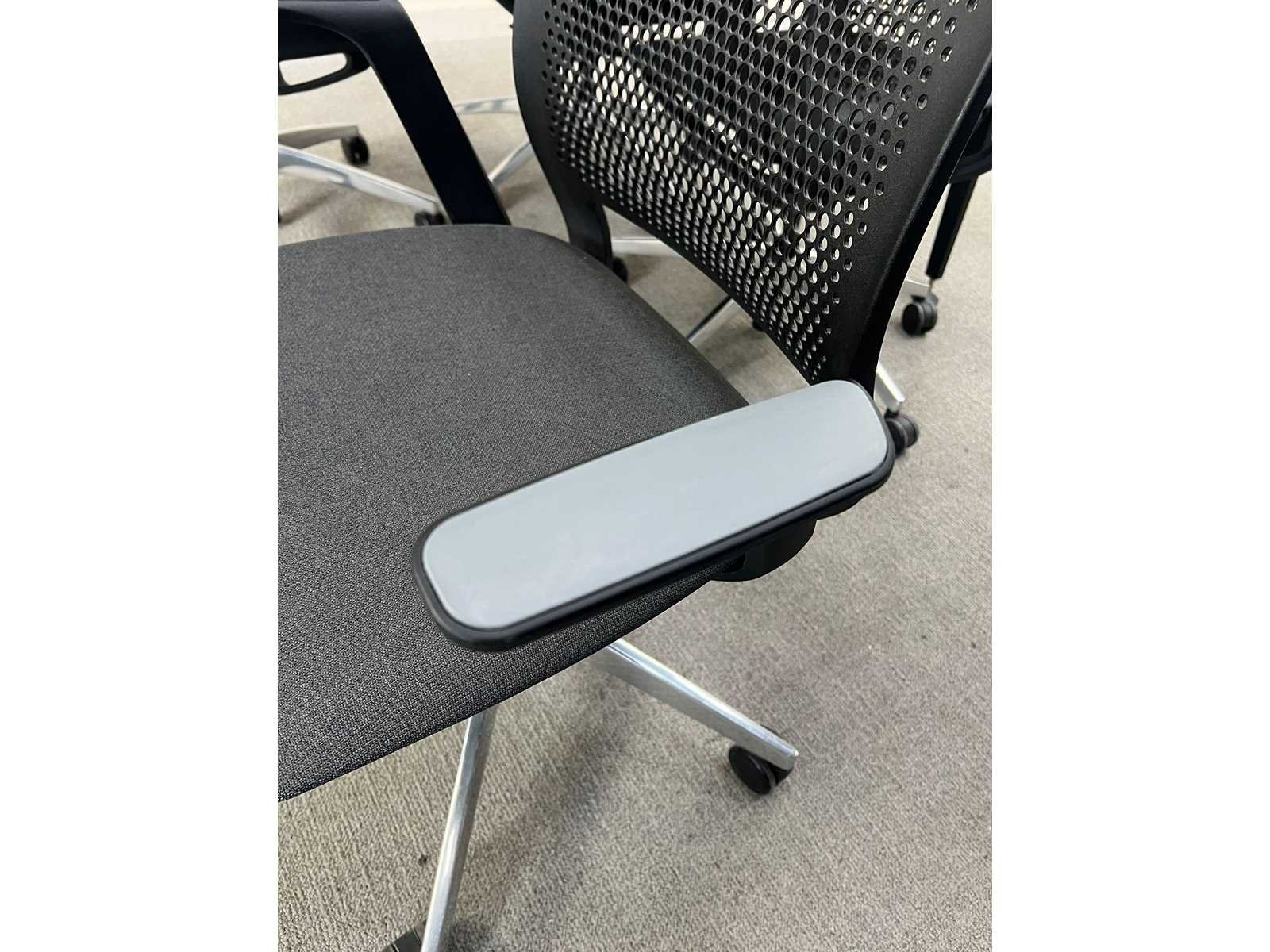 Omschrijving Moderne en representatieve vergaderset bestaande uit een Sedus Mastermind vergadertafel met 4 stuks Sedus Motion vergaderstoel. De tafel heeft een strak antraciet blad met geïntegreerde elektrificatie en staat op een zwart metalen onderstel. Ideaal voor grotere vergaderruimtes, boardrooms of projectruimtes. De bijhorende Sedus Motion stoelen hebben een ergonomische kunststof/mesh rugleuning en een verrijdbaar onderstel, wat zorgt voor comfortabel zitten tijdens langere vergaderingen. Afmetingen tafel Breedte: 180 cm Diepte: 90 cm Hoogte: ca. 75 cm Staat Gebruikt – in goede algemene staat met normale gebruikssporen. Nee Merk: SEDUS Model: Vergadertafel + 4 SEDUS SE:Motion vergaderstoelen Kleur: antraciet Lengte: 180cm Breedte: 90cm Hoogte: 75cm