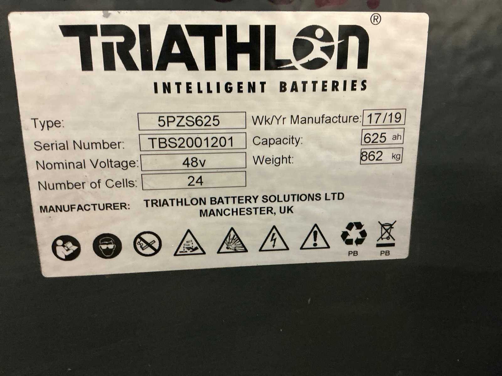 Triathlon 2019 Accu met automatische vulling , werklichten voor en achter , kit verlichting openbare weg , mast rek Nee Merk: Linde Type: E16-01 Bouwjaar: 2010 Serienummer: H2X386A05025 Brandstof: Elektrisch Mast: Duplex Soort band: Volrubber banden Aantal wielen: 4 Afgelezen urenstand: 5600 Eigen gewicht: 3600kg Hefvermogen: 1600kg Lepellengte: 1150mm Min. hefhoogte: 0mm Max. hefhoogte: 3850mm Vol rubber banden: true Totale afmeting L: 2000mm Totale afmeting Breedte: 1080mm Totale afmeting Hoogte: 2450mm Leveringsvoorwaarden: Gratis op vrachtwagen