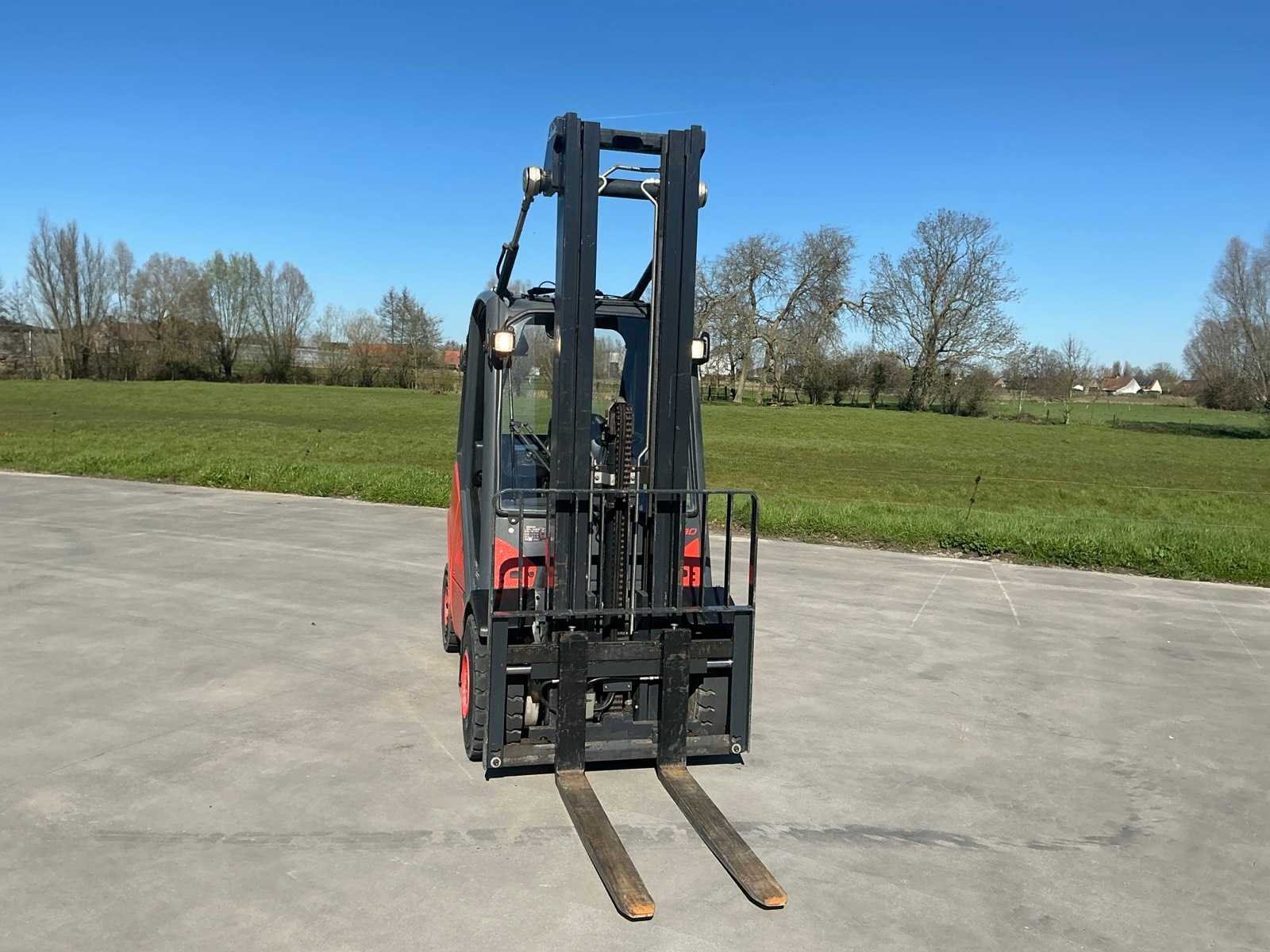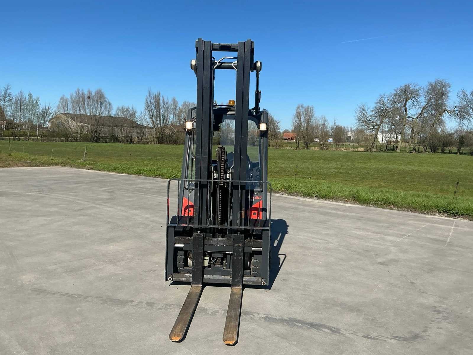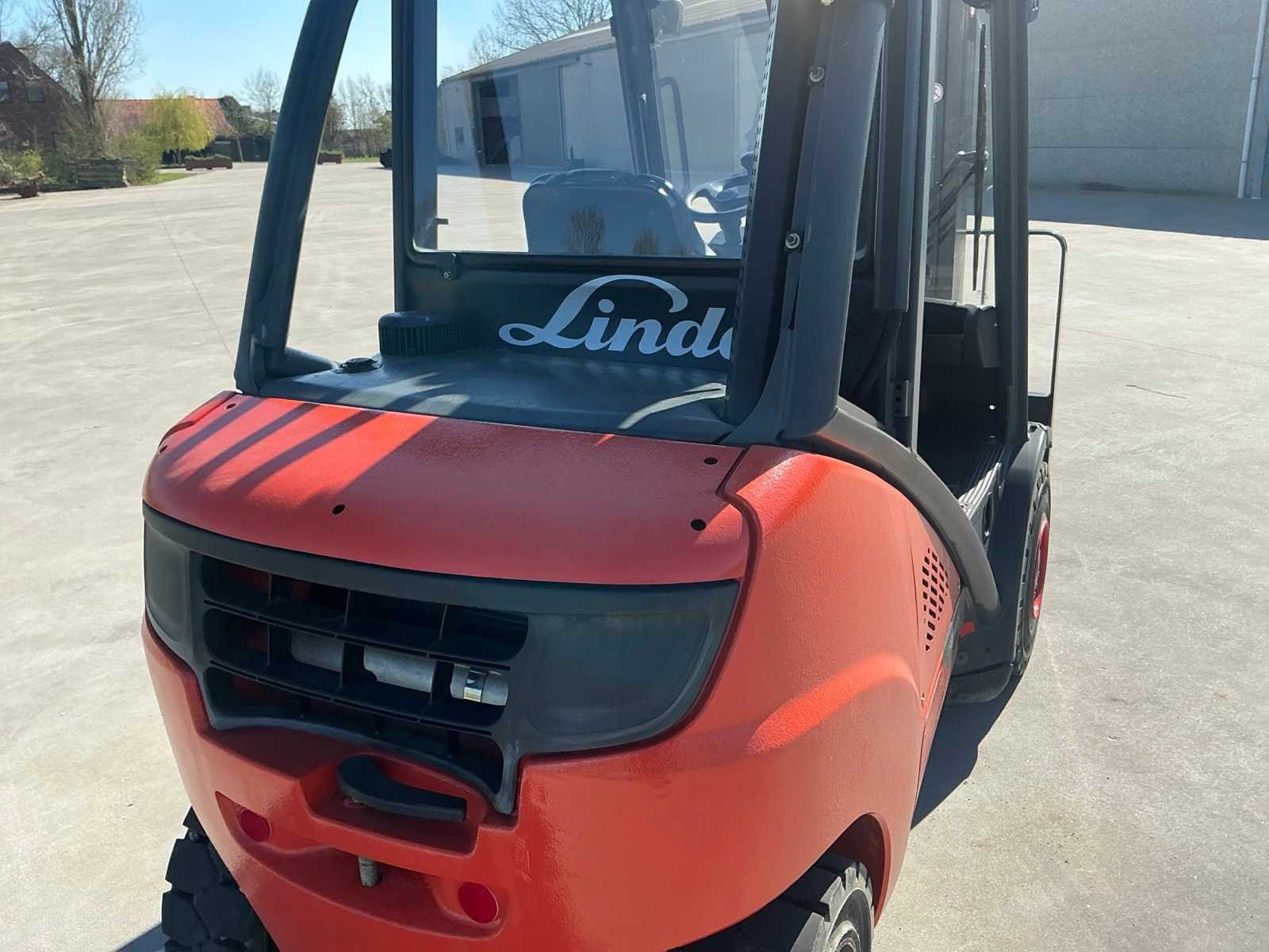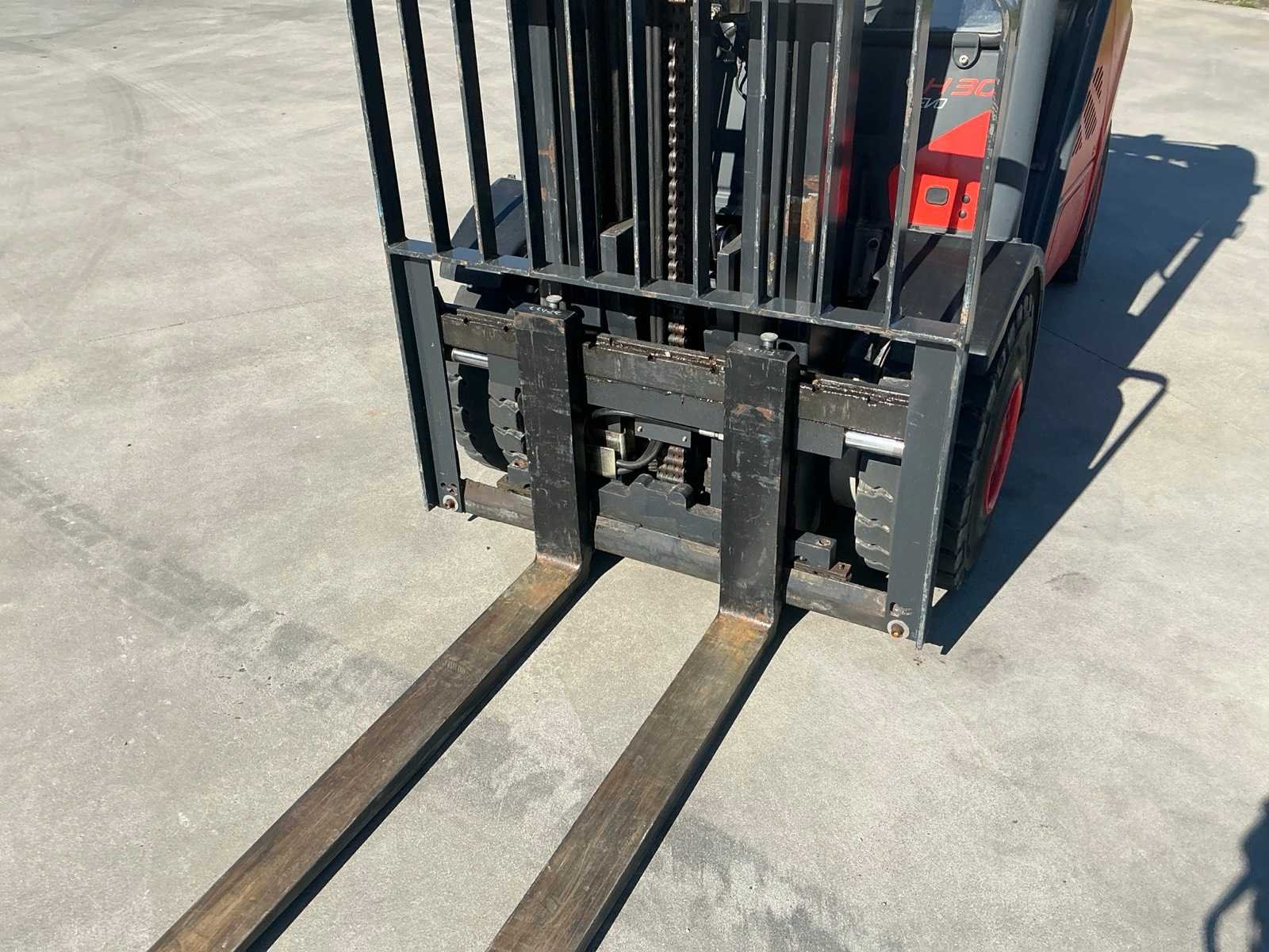 Werklichten voor en achter , flash light , geveerde stoel Nee Merk: Linde Type: H30D-02 Bouwjaar: 2013 Serienummer: H2X393 D53837 Brandstof: Diesel Mast: Triple Soort band: Volrubber banden Aantal wielen: 4 Afgelezen urenstand: 5200 Side-shift: true Triple mast: true Eigen gewicht: 4820kg Hefvermogen: 3000kg Lepellengte: 1200mm Min. hefhoogte: 0mm Max. hefhoogte: 6450mm Vol rubber banden: true Totale afmeting L: 2800mm Totale afmeting Breedte: 1250mm Totale afmeting Hoogte: 2850mm Diesel: true Leveringsvoorwaarden: Gratis op vrachtwagen