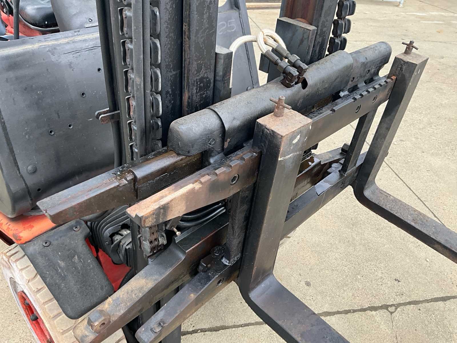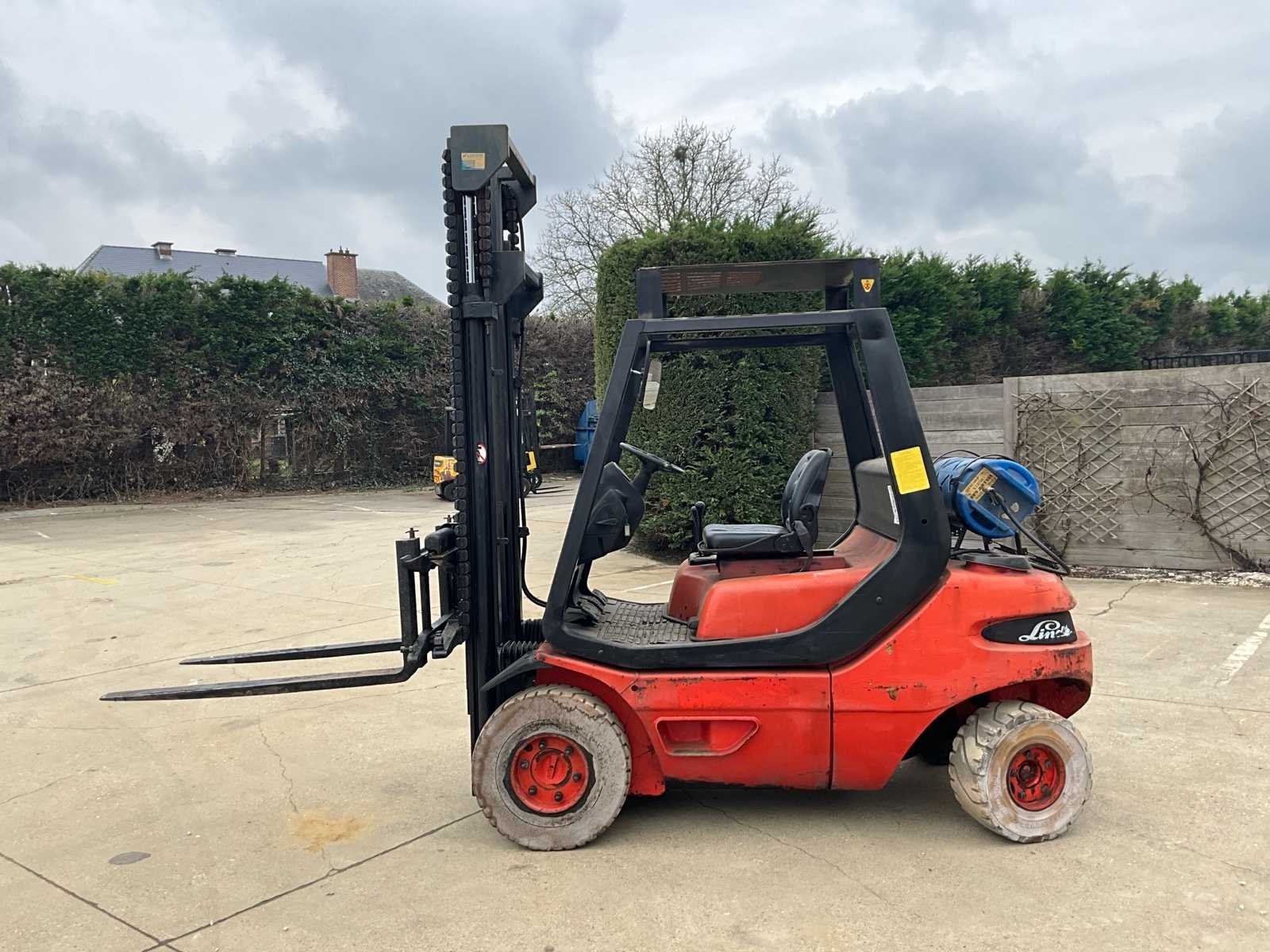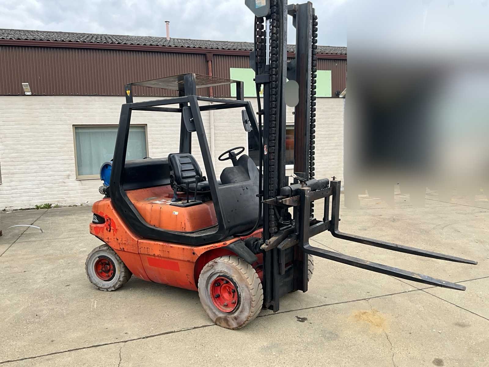 Wide view mast - volledig functioneel - Deutz motor No Merk: Linde Type: H25D Brandstof: LPG Aantal wielen: 4 Afgelezen urenstand: 5847 Side-shift: true Duplex mast: true Hefvermogen: 2500kg Max. hefhoogte: 3980mm Vol rubber banden: true Minimale doorrijhoogte: 2300mm LPG: true