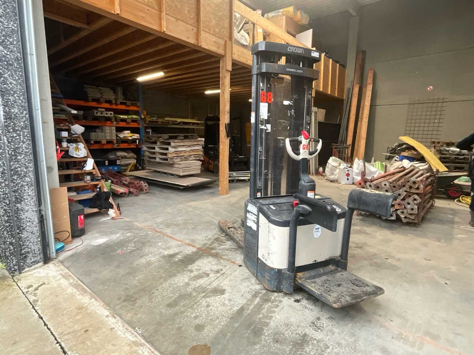 Elektrisch Gewicht / capaciteit Eigen gewicht kg: 1476 kg Hefvermogen kg (max volgens plaat): 1400 kg @ 600 mm 1020 kg @ 600 mm 700 kg @ 600 mm Elektrische stapelaar Sta-platform Beschermbeugel Duplex mast Elektrisch heffen Elektrisch rijden Lader aanwezig Nee Merk: Crown Equipment Type: WE 2300 series Serienummer: 5A142612 Eigen gewicht: 1476kg