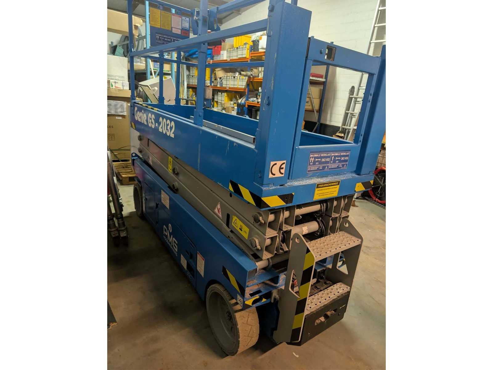 Merk: Genie Type: GS-2032 Serienummer: GS3214C-11573 Bouwjaar: 2014 Brandstof: Elektrisch Hefcapaciteit: 363 kg Werkhoogte: 8,10 m Afgelezen draaiuren: 490 u Eigen gewicht machine: 1826 kg Rijwerk: Wielen Type: Schaarlift Banden: Non-marking banden Kleur: blauw Opties: Platformafmetingen 0.80x2.26m Uitschuifbaar tot 3.17m CE-certificaat Handleiding Beschrijving machine: Machine start, rijdt, stijgt en daalt. Nee Merk: Genie Type: GS-2032 Bouwjaar: 2014 Serienummer: GS3214C-11573 Schaarhoogwerker: true Afgelezen urenstand: 490