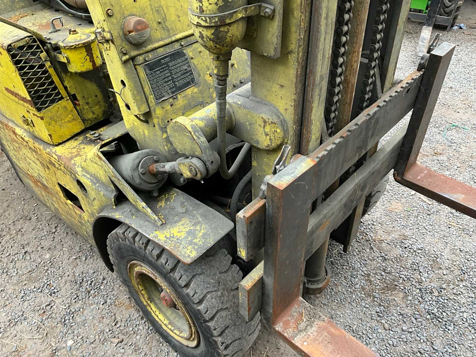 Technische Specificaties • Fabrikant: Clark Equipment • Type aandrijving: Diesel • Capaciteit: 2268 kg • Lastzwaartepunt: 610 mm (Load Center) • Maximale verticale hefhoogte: 3002 mm • Serienummer: DRY508-9184 (mogelijk modelcode beginnend met DRY508) • Maximum Ratings: • A (Afstand lastzwaartepunt): 61 cm • B (Hefhoogte): 3912 mm Let op: bij gebruik van attachments (bv. sideshift of vorkversteller) moet je steeds de aparte capaciteitsplaat raadplegen zoals vermeld: “For ratings with attachments, see attachment name plate. DO NOT EXCEED RATINGS.” ⸻ Bijzonderheden en Context Clark is een gerenommeerd Amerikaans merk dat al sinds de jaren 1910 vorkheftrucks bouwt. Het bedrijf had ook productie in Europa, waaronder België, zoals hier vermeld (”Made in Belgium”). Dit model lijkt afkomstig uit een oudere serie die vaak gebruikt werd in zware industriële omgevingen zoals magazijnen, bouwwerven of transportbedrijven. Een heftruck met een hefvermogen van 2268 kg (oftewel 5000 lbs) is typisch geschikt voor middelzwaar werk. Het dieselmodel is robuust, krachtig en ontworpen voor gebruik buitenshuis of in goed geventileerde loodsen. ⸻ Mogelijke toepassingen • Laden en lossen van paletten • Transport van materialen op bouwplaatsen • Stapelen van zware goederen in opslagruimtes • Industriële toepassingen waar elektrisch niet haalbaar is Nee Merk: Clark Brandstof: Diesel