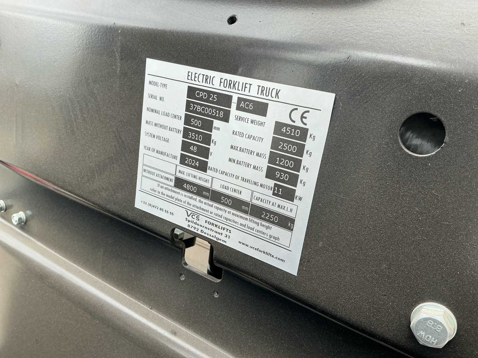 -Inclusief oplader -Blauw licht indicator achteruitrij No Merk: HANGCHA Type: CPD 25 Bouwjaar: 2024 Brandstof: Elektrisch Aantal wielen: 4 Afgelezen urenstand: 17 Side-shift: true Hydraulisch verstelbare lepels: true Triple mast: true Lepellengte: 1200mm Max. hefhoogte: 4600mm Vol rubber banden: true