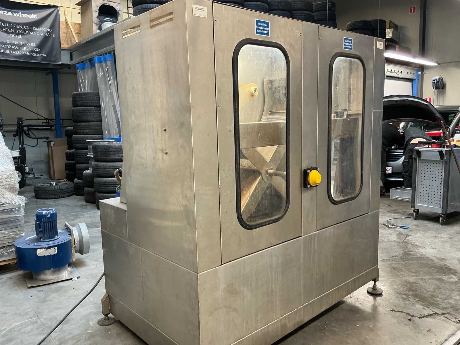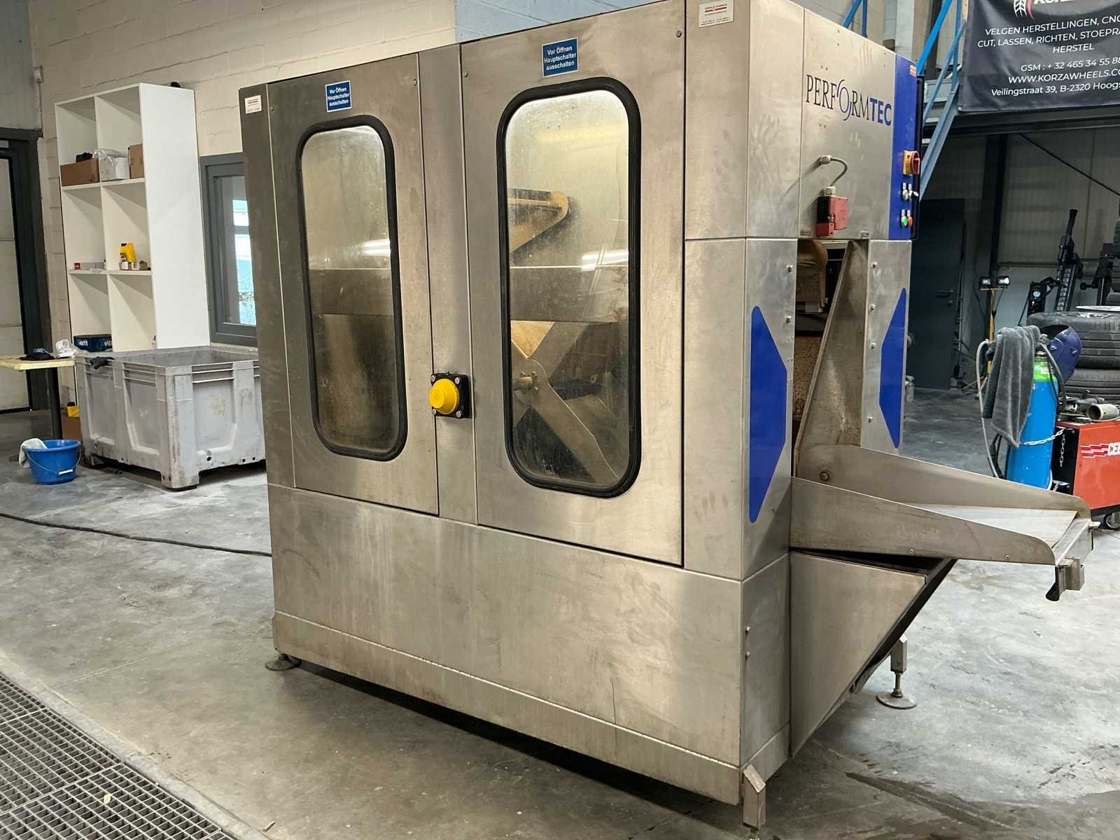 PerformTec 4velgenwasser Max wheel diameter : 690mm Max weight per wheel : 25kg Feed watter temp: 60graden Heftruck aanwezig No Merk: PerformTec Lengte: 157cm Type: 4-velgenwasser Serienummer: 105217 Bouwjaar: 2007 Roll-over type: true Aansluiting: 380V Eigen gewicht: 670kg Totale afmeting L: 1700mm Totale afmeting Breedte: 1100mm Totale afmeting Hoogte: 2000mm