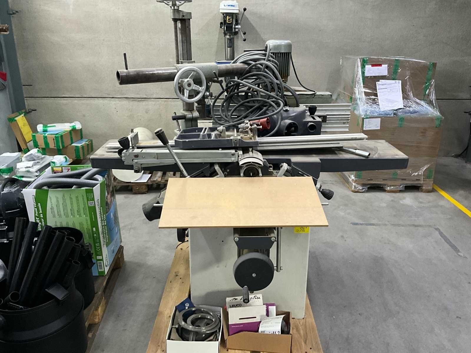 De Robland X31 is een houtgestookte combinatiemachine die in België wordt gemaakt. Het combineert meerdere machines in één, wat ruimte bespaart in een werkplaats. Het combineert doorgaans 5 tot 7 functies: - Cirkelzaag - Tol - Vlakbank - Schaafbank (vlakvlak) - Inrijmachine, die wordt gedraaid, 👉 Het idee: om meerdere afzonderlijke machines te vervangen door één enkele. ⚙️ Technische gegevens (ongeveer) Snijbreedte: ~310 mm Schaafhoogte: ~230 mm Zaagblad: ~250 mm (kantelbaar tot 45°) Motoren: vaak 3 motoren van ongeveer 2,2 kW Gewicht: ~600 tot 700 kg 👍 Voordelen Aanzienlijke ruimtebesparing Veelzijdigheid: stelt je in staat bijna alles te doen in timmerwerk Robuuste constructie (gietijzer, Belgische productie) Ideaal voor kleine werkplaatsen of garages Verkocht zoals het is - zie foto's No