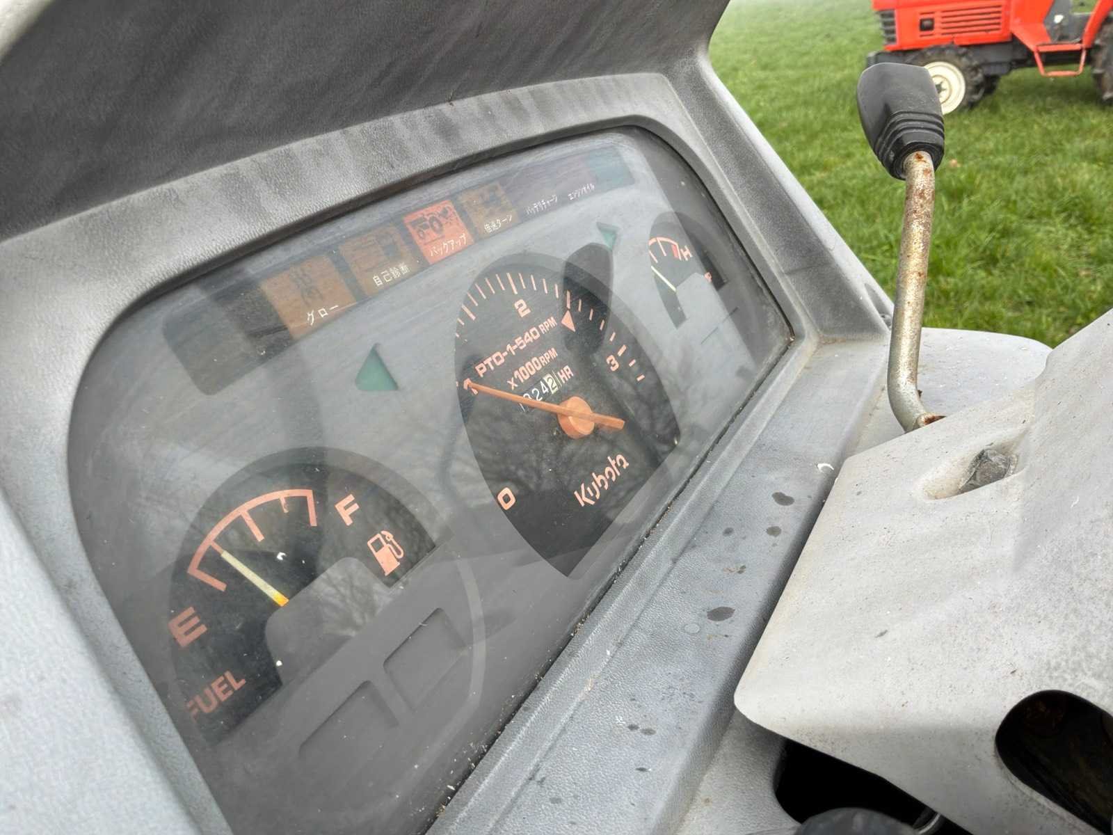 4 wielaandrijving Versnellingen : 16 vooruit 16 achteruit Omkeerversnelling aanwezig Nee Merk: Kubota Type: Grandel Serienummer: GL-19 Motorvermogen (kW): 19kW Afgelezen urenstand: 324 Aftakastoerental: 540rpm