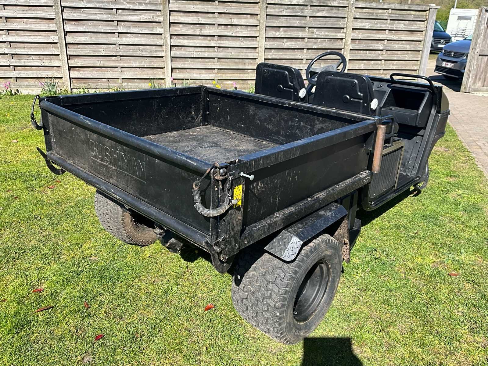 3-cilinder diesel - PTO aftakas - snel-en laagversnelling - hydraulische kipbak - tot 50km/h - werkverlichting - trekhaak - start, rijdt en remt zeer vlot ideel voor paardenwei of landbouw No Merk: Cushman Type: turfster 3wieler - hydraulische kipbak - PTO Bouwjaar: 2000 Brandstof: diesel