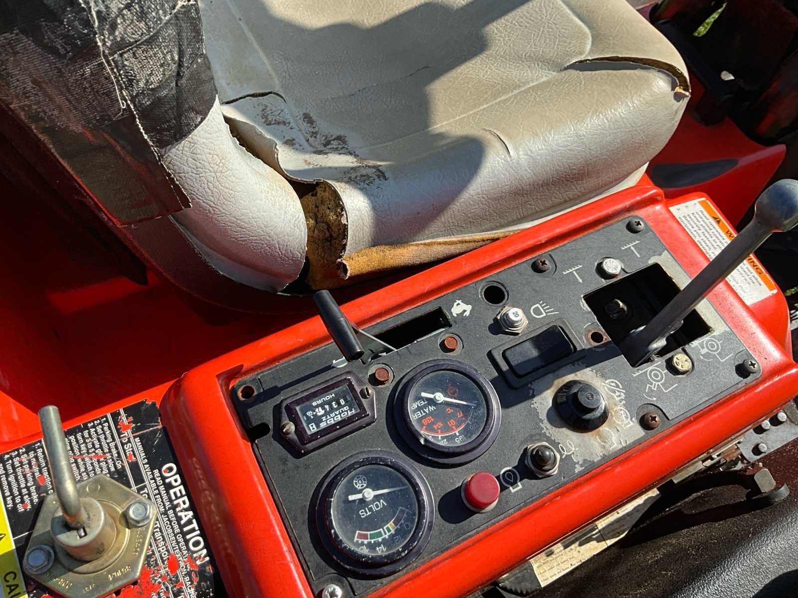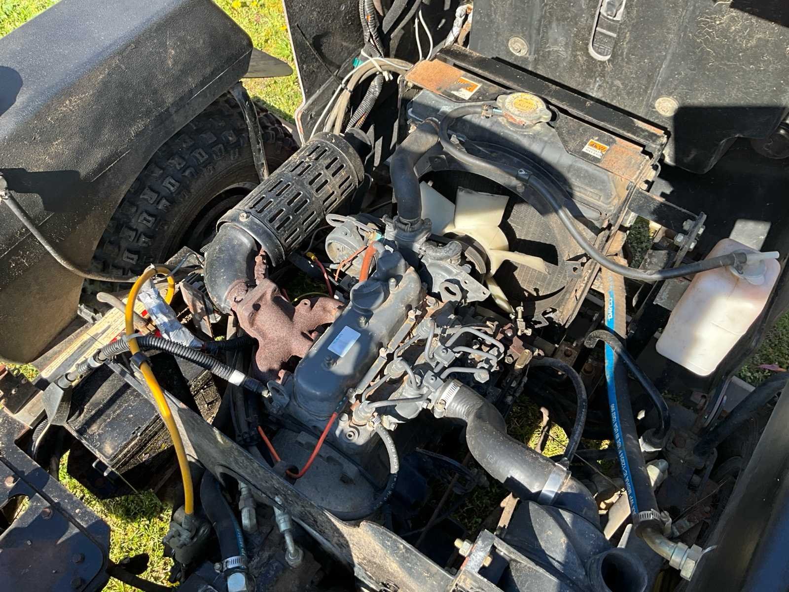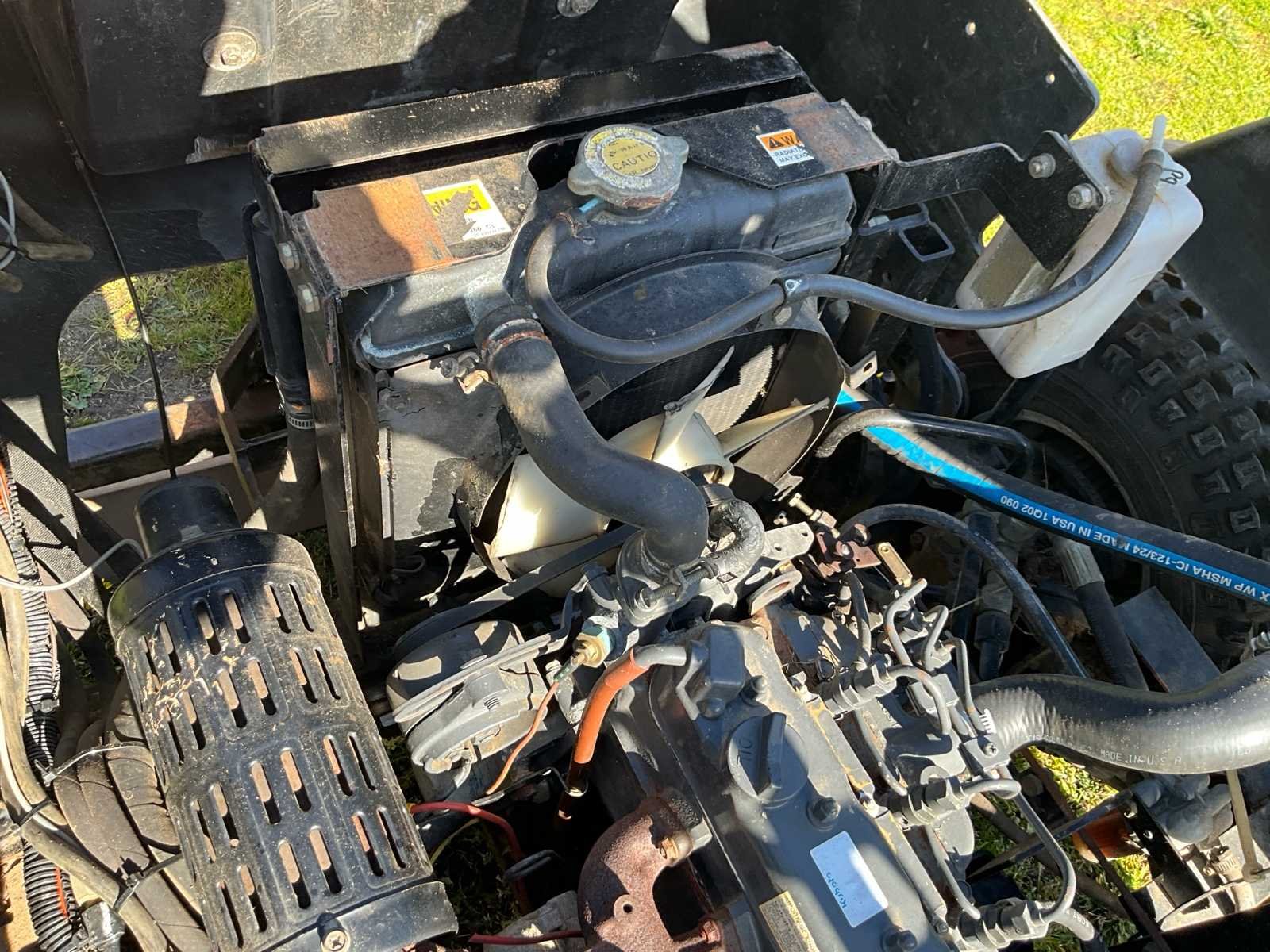 Volledig functioneel - 3 wielen- paardensleep - diesel- sterke 3cilinder Kubota-motor - trekt op 3 wielen waardoor je niet vast rijdt - hydrostaat - kantelt hydraulisch - trekhaak - sleepbalk kan je verwijderen - zetel beschadigd - sleepbalk van 200cm No Merk: Jacobsen Type: Textron Type motor: Kubota Brandstof: diesel