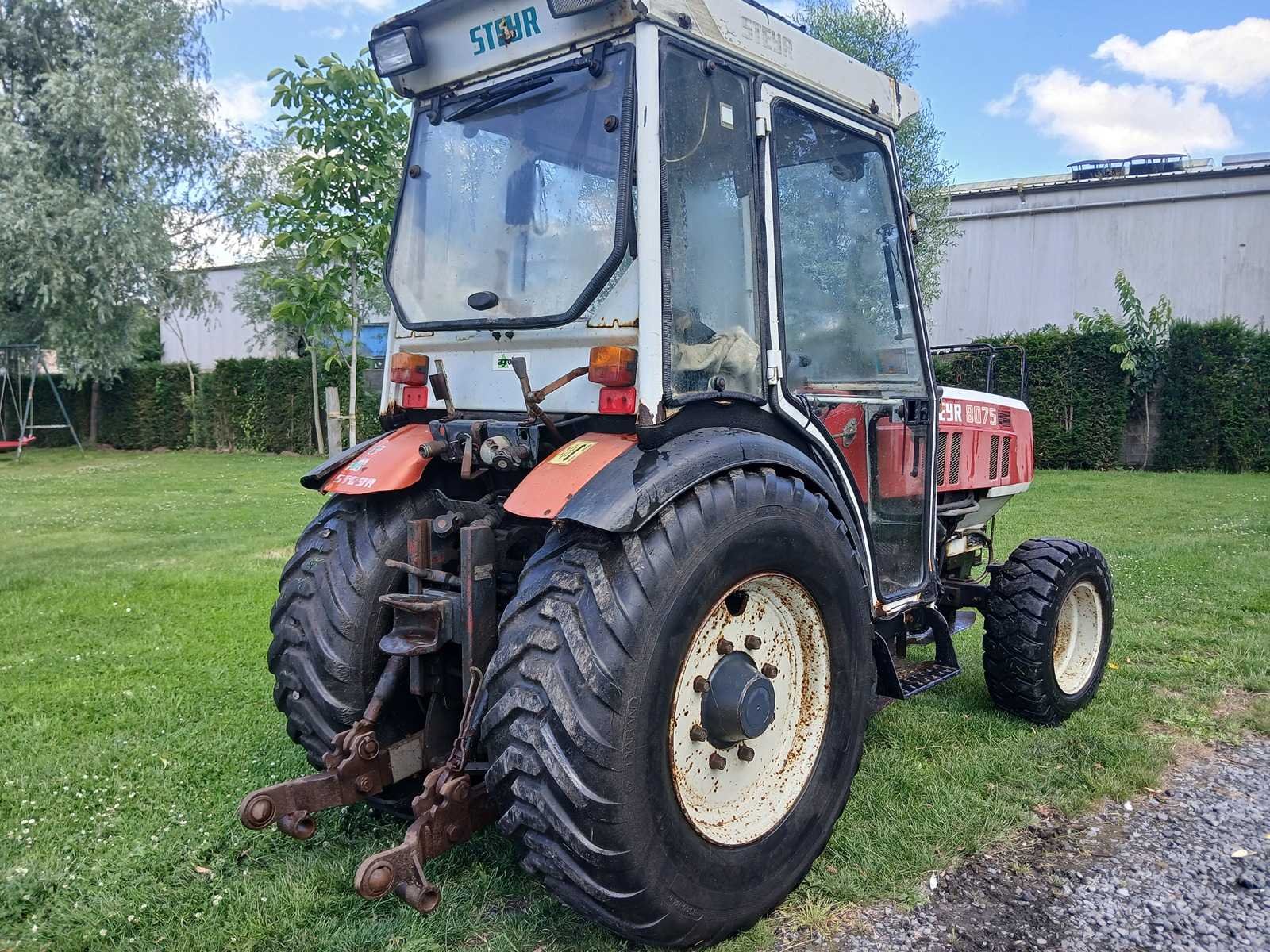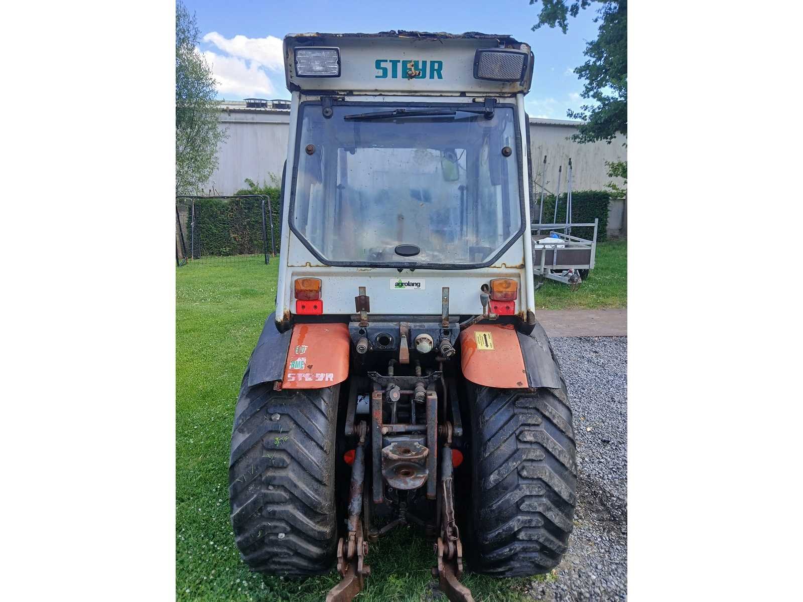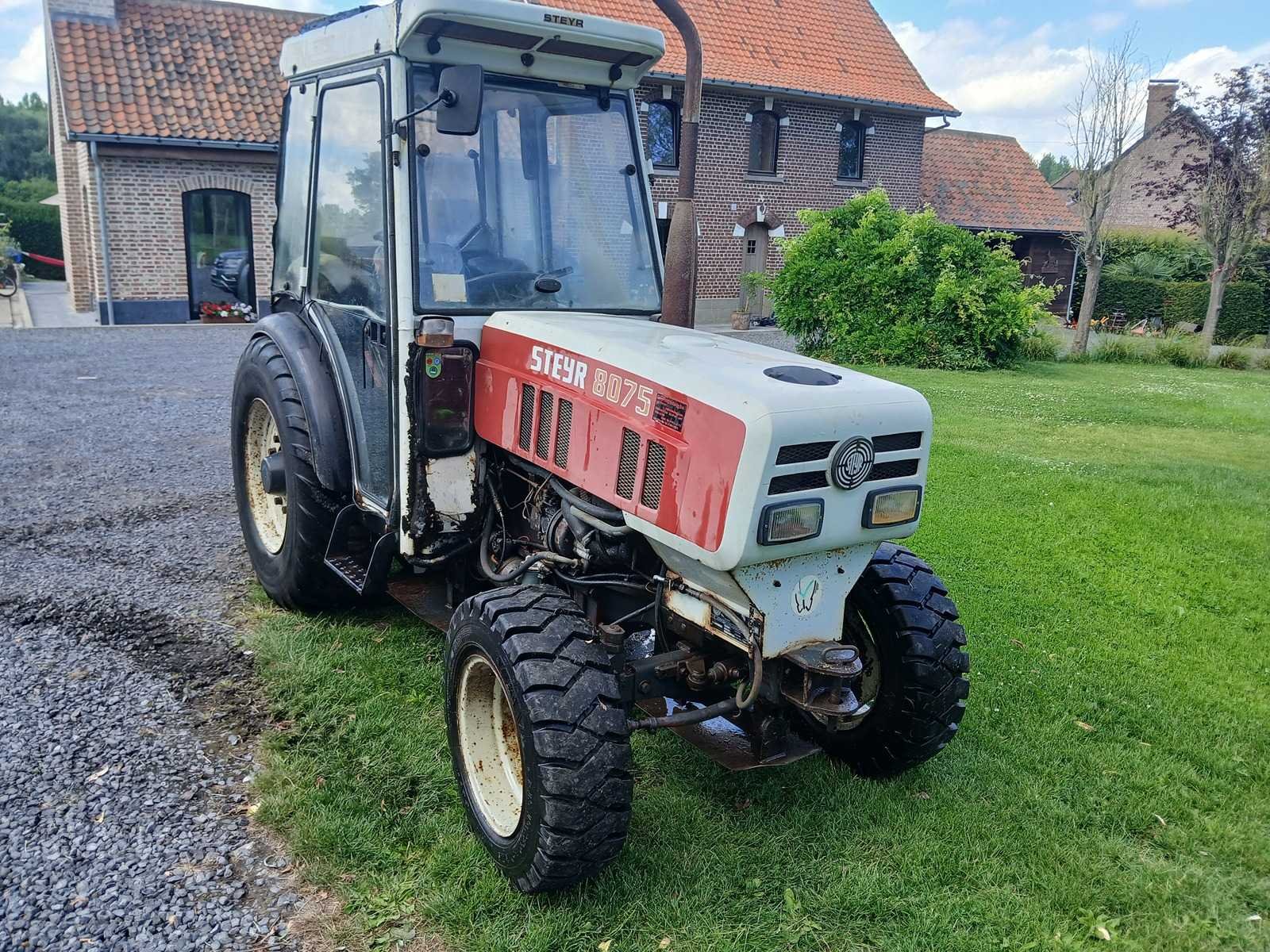 Steyr smalspoor tractor / 1.3m breed / 3.2m lang /2.3m hoogte / met originele cabine Type 8075 / 4x2 / afgelezen urenstand 5208h / 4 cilinder steyr motor met 70pk / start-rijd en voert alle functies uit / bandenmaat vooraan 8.15 R15 / bandenmaat achter 15H R22.5 / geen documenten Nee Merk: Steyr Type: 8075 Afgelezen urenstand: 5208