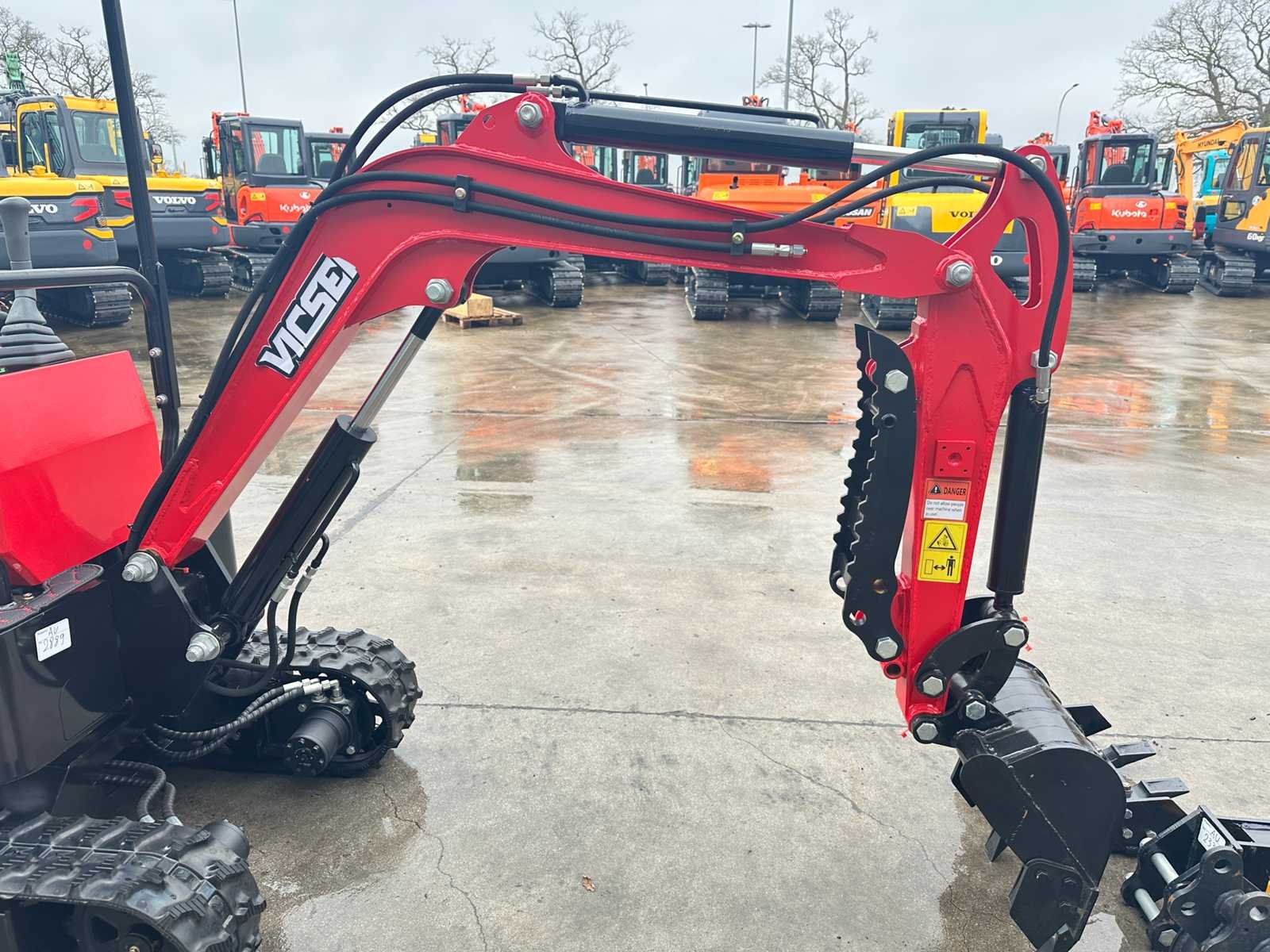 Hamerleidingen. Tandenbak en duimklem. Duwblad . Nieuw . Geen documenten. Inclusief toebehoren. - Twee stuks nieuwe tandenbakken - Boorkop incl. grondboor Nee Merk: VICSEC Type: VC13 - R Bouwjaar: 2025 Serienummer: VC13-R250308 Merk motor: 420CC Brandstof: Benzine Graafbak afm. b: 400mm Rups breedte: 180mm Afgelezen urenstand: 0 Eigen gewicht: 1000kg Totale afmeting L: 2900mm Totale afmeting Breedte: 950mm Totale afmeting Hoogte: 2150mm