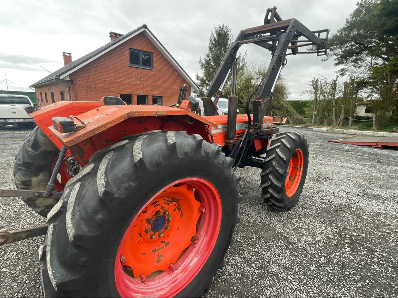 SAME Mercury 85 Special DT landbouwtractor in 4x4-configuratie, uitgerust met een voorlader. Machine, geschikt voor landbouwwerk, hantering en veelzijdig gebruik. Kenmerken: Merk: HETZELFDE Model: Mercury 85 Special DT Vermogen: 62 kW (85 pk) Openingstijden: 4.477,6 uur Transmissie: 4WD (DT) Voorlader gemonteerd Achterste verbinding Achterste hydraulische doppen Vermogensafname (PTO) Status: Tractor in gebruikte staat Zichtbare algemene slijtage (verf, oppervlaktecorrosie) Versleten / vervangend zadel Banden met normale slijtage Huidige hydraulische installatie Geteste werking Administratieve informatie: Voertuig met Belgische papieren Fabrikantplaat aanwezig Serienummer: 11782 (nog te bevestigen – zie foto's) Jaar: ± 1990 (geschat) Non Merk: SAME Type: Mercury 85 Special DT Bouwjaar: 1988 Serienummer: 11782 Motorvermogen (kW): 62kW Afgelezen urenstand: 4478 Voorlader: true