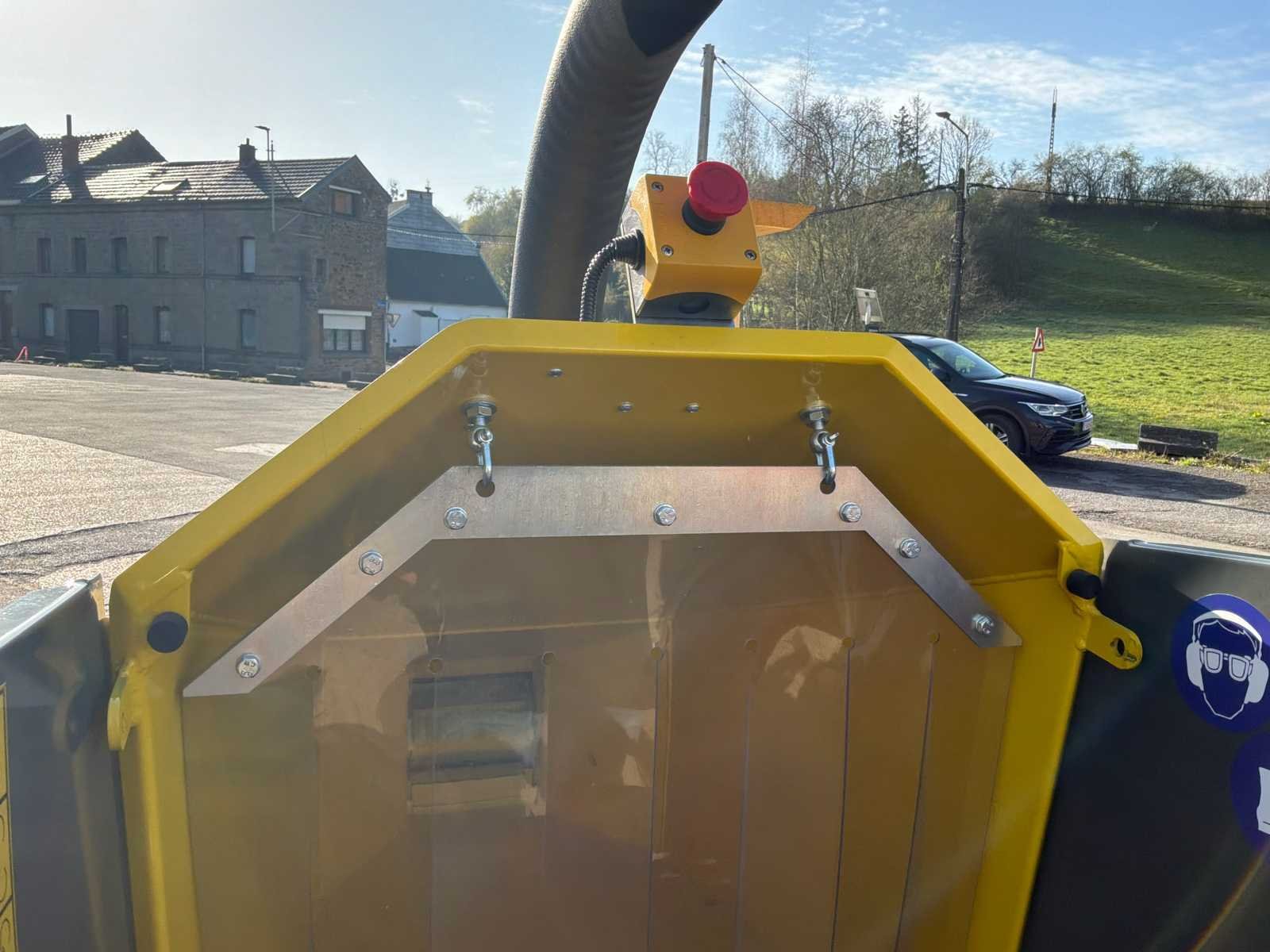 Aandrijftype: Power Take-off (PTO) Vermogensvereisten: 18 tot 30 pk (13 tot 22 kW) Hitch: 3 punten (categorie 1) Betaald tijd: 540 tpm Maximale takdiameter: 10 cm ⸻ Slijpsysteem • Snijschijfsysteem • Stuurwiel: ± 45 cm (≈ 49 kg) • 2 verstelbare bladen • No Stress System (automatische vermogensregeling) • Pilot System (machinebesturingscomputer) ⸻ Stroom & Werking • Hydraulische toevoerrollen • Rolbreedte: 200 mm • Roldiameter: 140 mm • Hydraulisch instelbare snelheid • Elektrische voor-/achteruitbesturing ⸻ Afmetingen / transport • Werkafmetingen: 1800 x 800 x 1930 mm • Transportafmetingen: 1800 x 800 x 1930 mm • Opvouwbare trechter • Toevoertrechter: 1510 x 700 mm • Inlaathoogte van de hopper: 950 mm • Afvoerhoogte: 1780 mm ⸻ Uitrusting • 270° draaibare open haard • Onafhankelijke hydraulische pomp met reservoir • Draaibare afzuigkap • Veiligheidsbeugel op trechter • Gegalvaniseerd chassis ⸻ • Biologisch afbreekbare olie • Gemakkelijke onderhoudsmogelijkheden (eenvoudige schijftoegang) • Garantie: 3 jaar of 1000 uur Compacte en krachtige professionele versnipperaar Automatisch Systeem zonder stress Compatibel met kleine tractoren Zeer weinig gebruikt (2023) Gemakkelijke transportatie (opvouwbare trechter) No Merk: TS industrie Type: Broyeur bois Model: WS 10 PTO Gewicht: 400kg Hoogte: 950cm Serienummer: 2355848