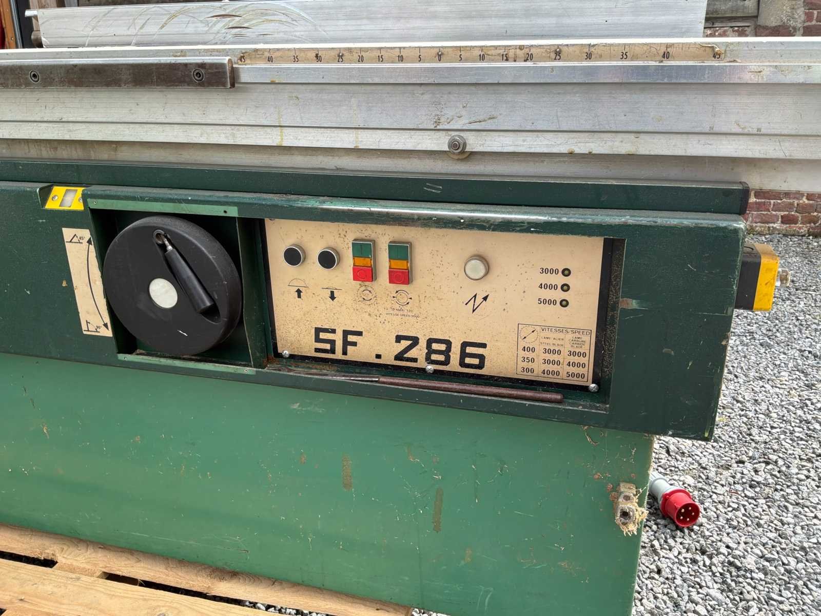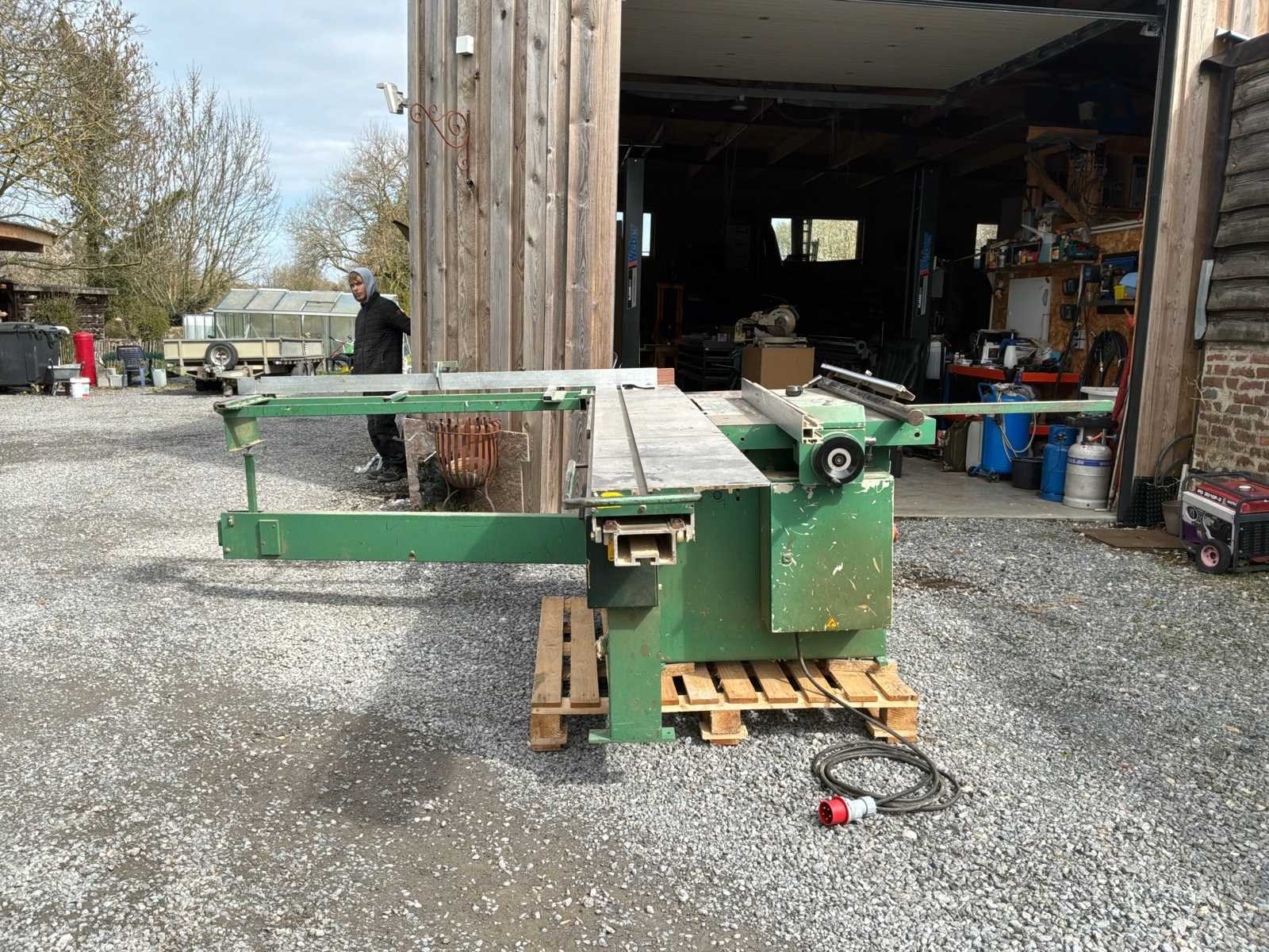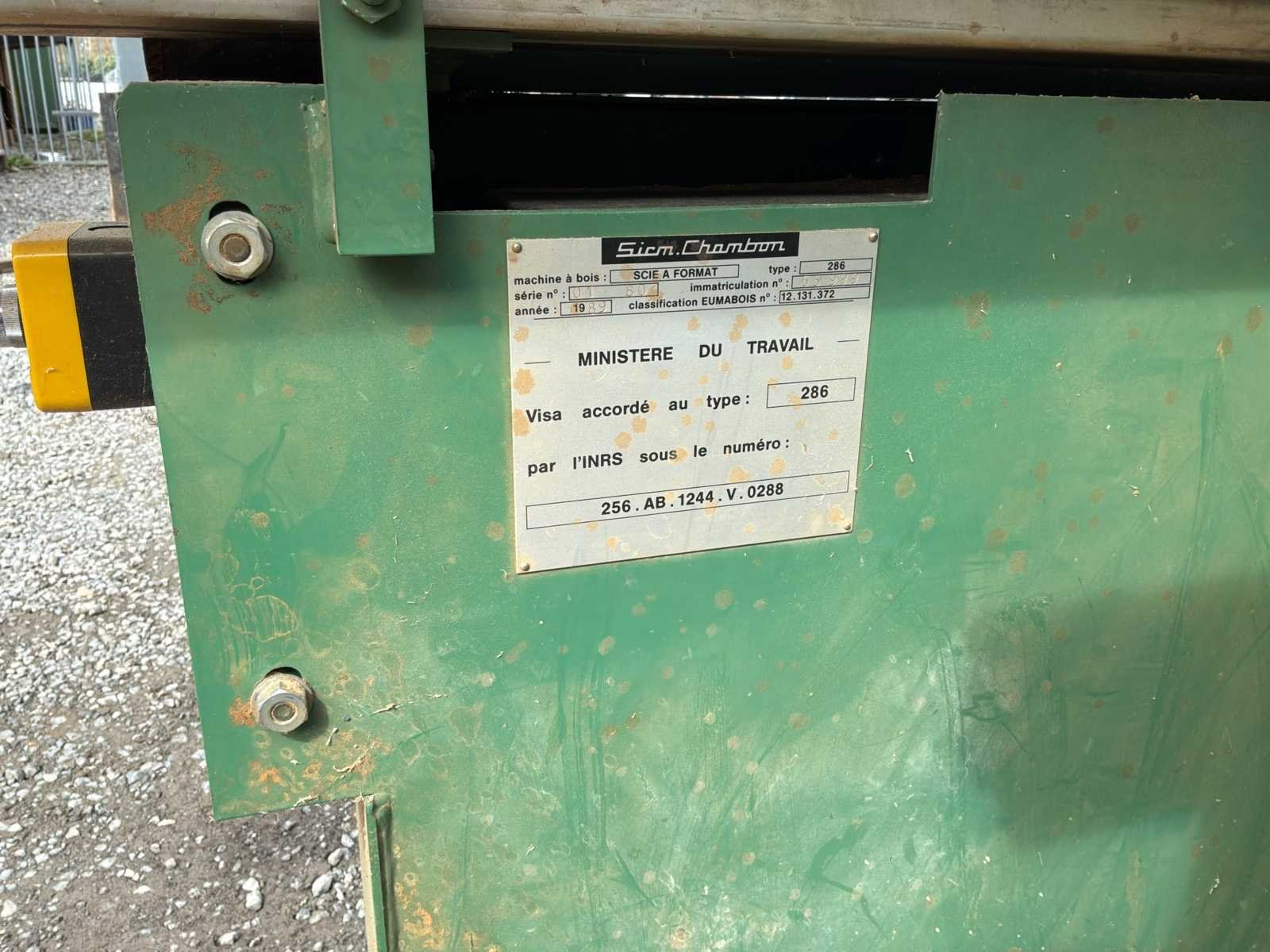 Chambon SF 286 professionele schuiftafelzaag werkt in goede staat. Robuuste en betrouwbare machine, ideaal voor timmerwerk, meubelmaken of houtwerkplaats. ✔️ Schuiftafel voor het snijden van panelen ✔️ Kantelblad (versteksnede) ✔️ Puntenmachine (voorgesneden voor melaminepanelen) ✔️ Meerdere toerentallen (3000 / 4000 / 5000 tpm) ✔️ Riphek en snijliniaal No Merk: Chambon Type: SF 286 Zaagblad Ø: 300mm Zaaghoogte: 100mm Tafel afmeting l: 3000mm Tafel afmeting b: 1000mm Motorvermogen (kW): 5.5kW Aansluiting: 380V Machinegewicht: 900kg