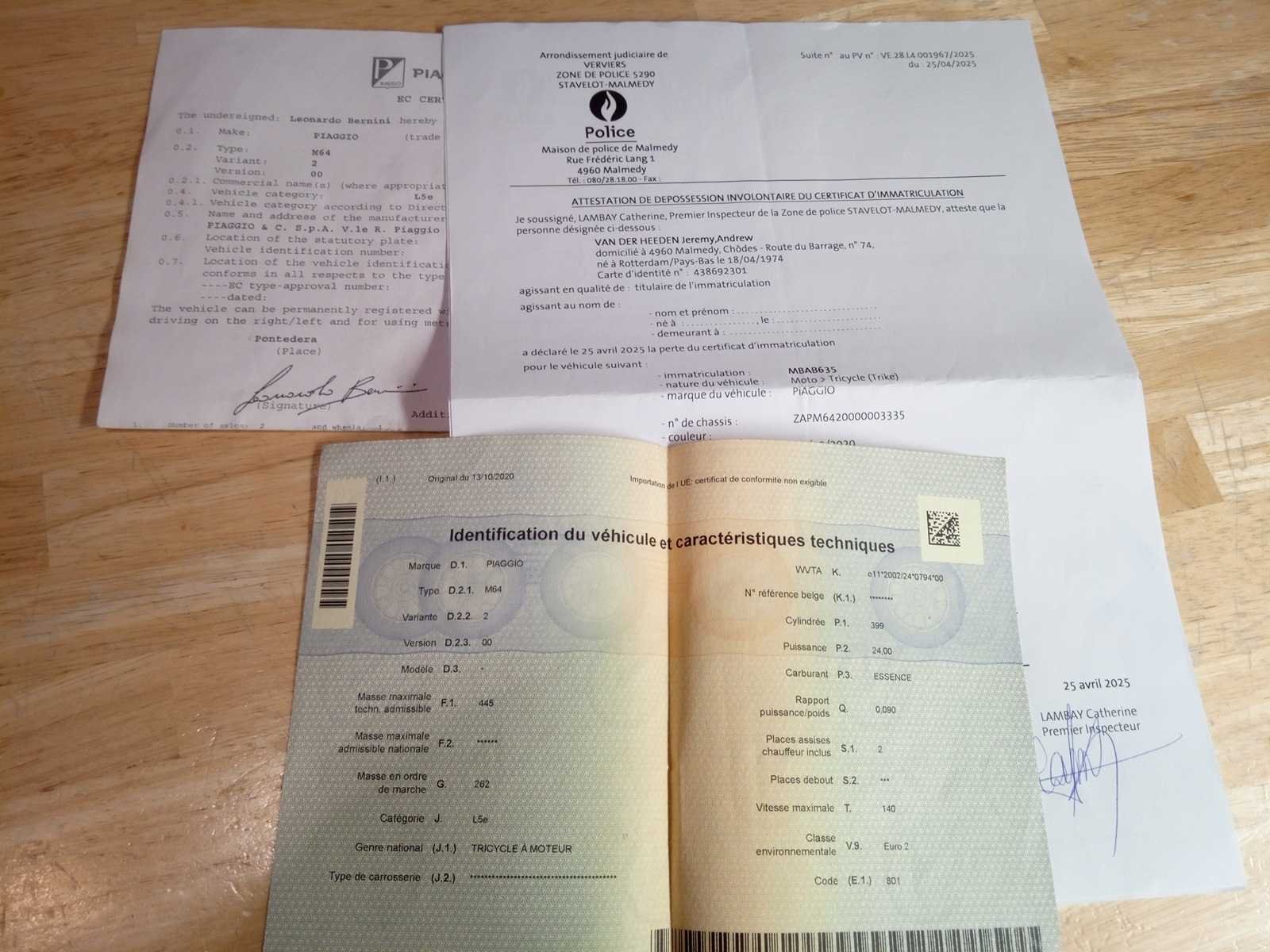 Inschrijvingsbewijs deel 1 en 2 deel attest van politie aanwezig, gelijkvormigheidsattest copy aanwezig . No Merk: piaggio Model: mp3 Chassisnummer: ZAPM6420000003335 Cilinderinhoud: 400cc Datum eerste toelating: 06/01/2009 Vermogen (kW): 24kW Afgelezen kilometerstand: 25300km Boorddocumenten aanwezig?: true Aantal sleutels: 1 Startinformatie: JA Bouwjaar: 2009