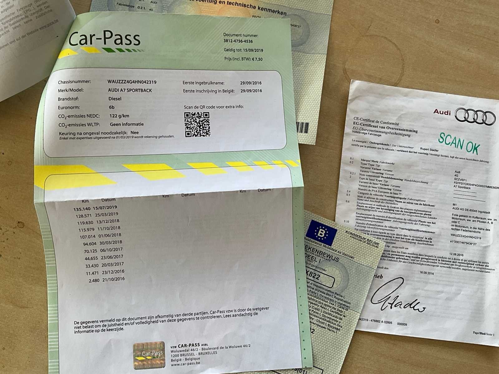 S- line ( 3maal) No Merk: Audi Model: A7 Sportback Type: 4G -S- line Bouwjaar: 2016 Afgelezen kilometerstand: 200045km Cilinderinhoud: 2967cc Vermogen (kW): 140kW Brandstof: Diesel Chassisnummer: WAUZZZ4G4HN042319 Datum eerste toelating: 29-09-2016 Energielabel: Euro 6 Aandrijving: Achteraan Aantal zitplaatsen: 5 Kleur: Grijs Transmissie: Automaat Drive type: Achterwiel Stuurwiel: Links Emissieklasse: Euro 6 Aantal deuren: 4 Aantal sleutels: 2 Aantal cilinders: 6 Nationaliteit documenten: België Onderhoudshistorie: Ja Gelijkvormigheidsattest aanwezig: true Carpass: true Start en rijdt: Ja Keuringsrapport geldig tot: 29/09/2026 Zichtbare schade: Ja Airconditioning: true Navigatie: true Xenon verlichting: true LED-koplampen: true Leder bekleed: true Inschrijvingsbewijs - deel 1 : Ja Inschrijvingsbewijs - deel 2: Ja