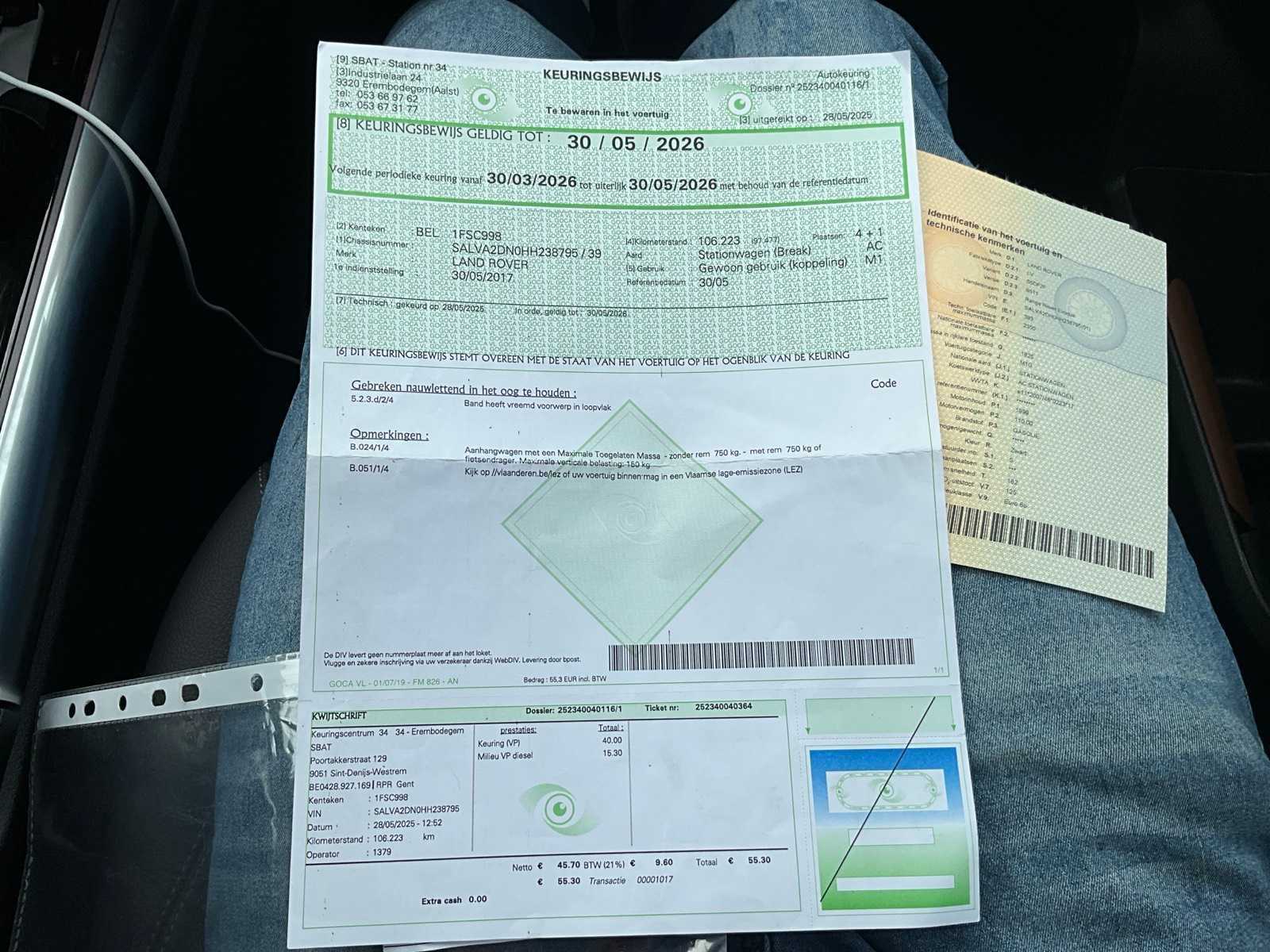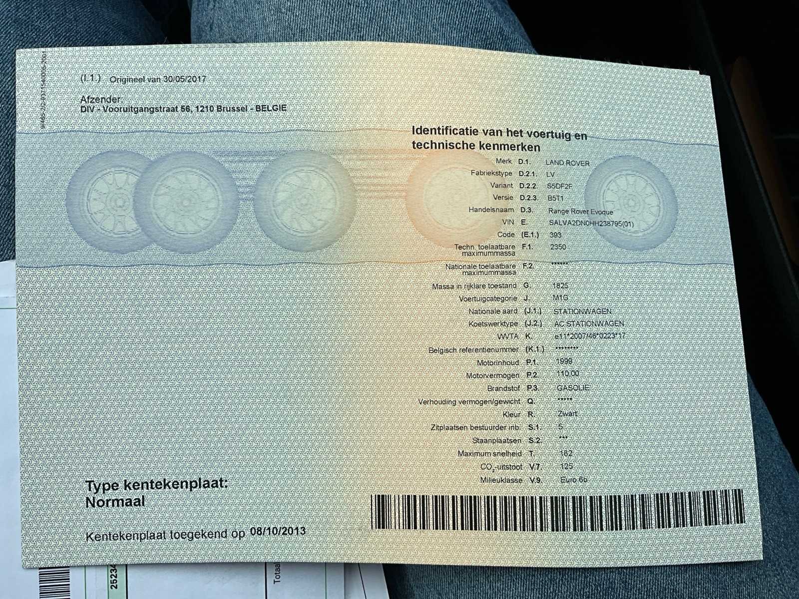 Eerste eigenaar. Olie + oliefilter vervangen Nee Merk: Range Rover Model: Evoque Type: 2.0 Td4 pure Bouwjaar: 2017 Afgelezen kilometerstand: 110313km Cilinderinhoud: 1999cc Vermogen (kW): 110kW Brandstof: diesel Chassisnummer: SALVA32DN0HH238795 Datum eerste toelating: 05/2017 Transmissie: Handgeschakeld Emissieklasse: Euro 6b Aantal sleutels: 2 Nationaliteit documenten: Belgisch Start en rijdt: Ja startinformatie : Start en rijdt Vavato voert geen technische keuring uit.: true Inschrijvingsbewijs - deel 1 : Aanwezig Inschrijvingsbewijs - deel 2: Aanwezig