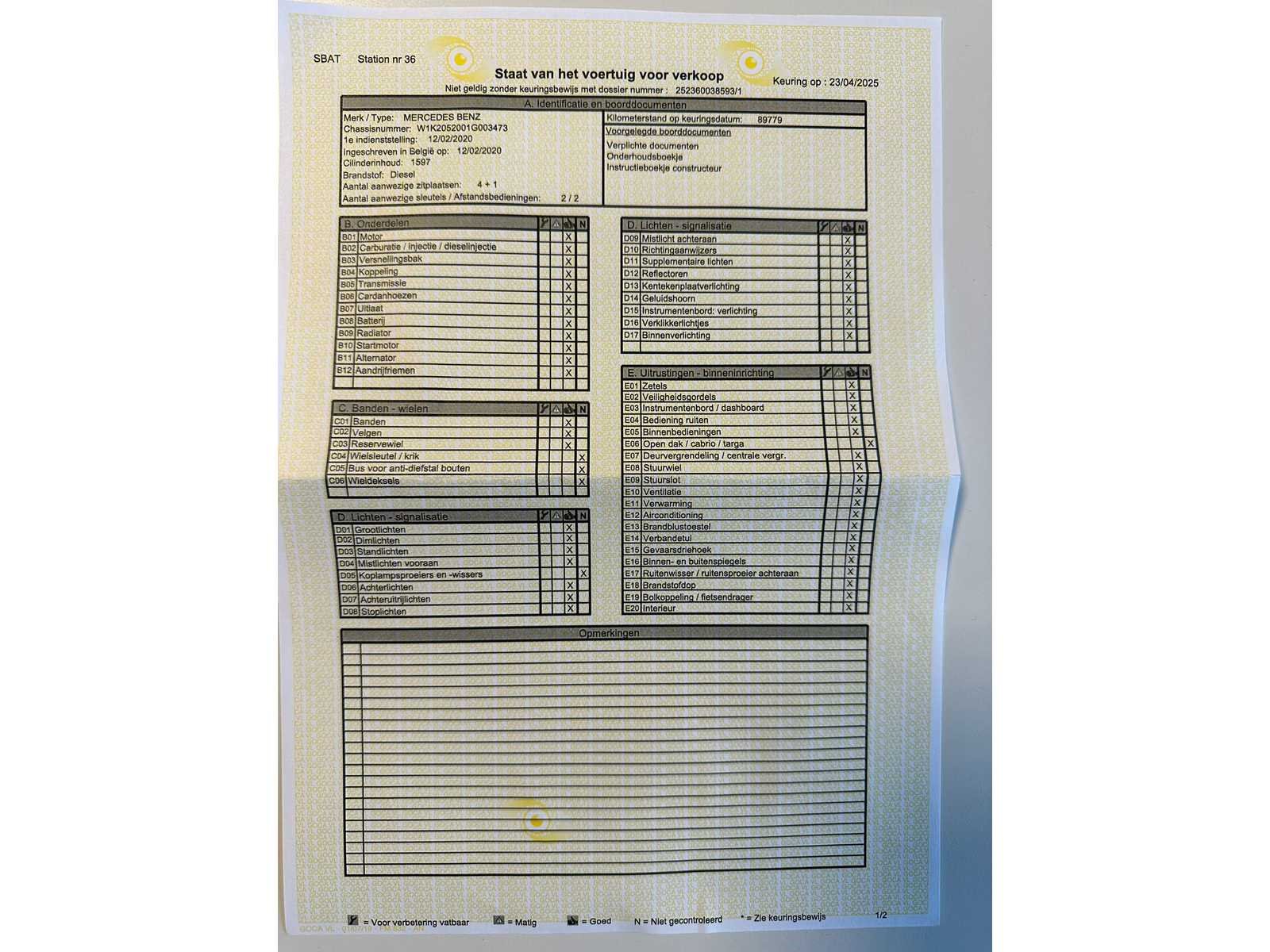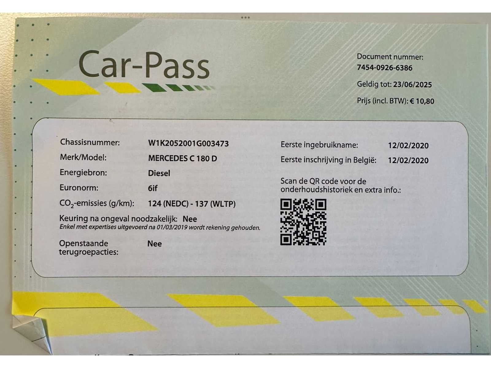 Nee Merk: Mercedes-Benz Model: C 180 d Bouwjaar: 2020 Afgelezen kilometerstand: 90000km Cilinderinhoud: 1597cc Vermogen (kW): 90kW Brandstof: diesel Chassisnummer: W1K2052001G003473 Datum eerste toelating: 12/02/2020 Transmissie: Handgeschakeld Nationaliteit documenten: Belgisch Start en rijdt: Ja startinformatie : Start en rijdt Inschrijvingsbewijs - deel 1 : Aanwezig Inschrijvingsbewijs - deel 2: Aanwezig